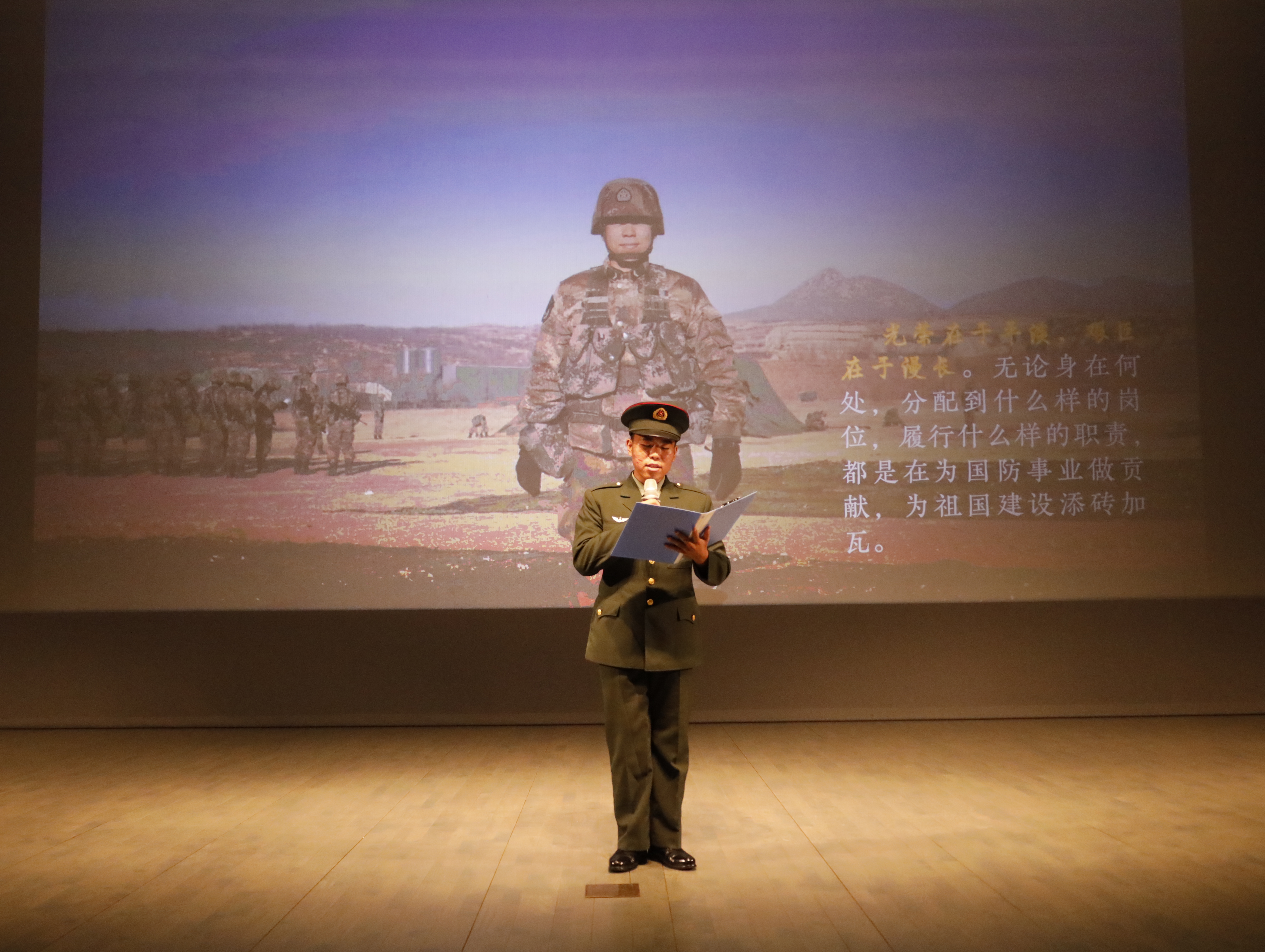 退伍老员工士兵、2018级本科生虢中奇结合自己的军旅生涯阐释他心目中青春和奋斗的意义,鼓励同学们于平淡和漫长中做出不平凡的事业和贡献。