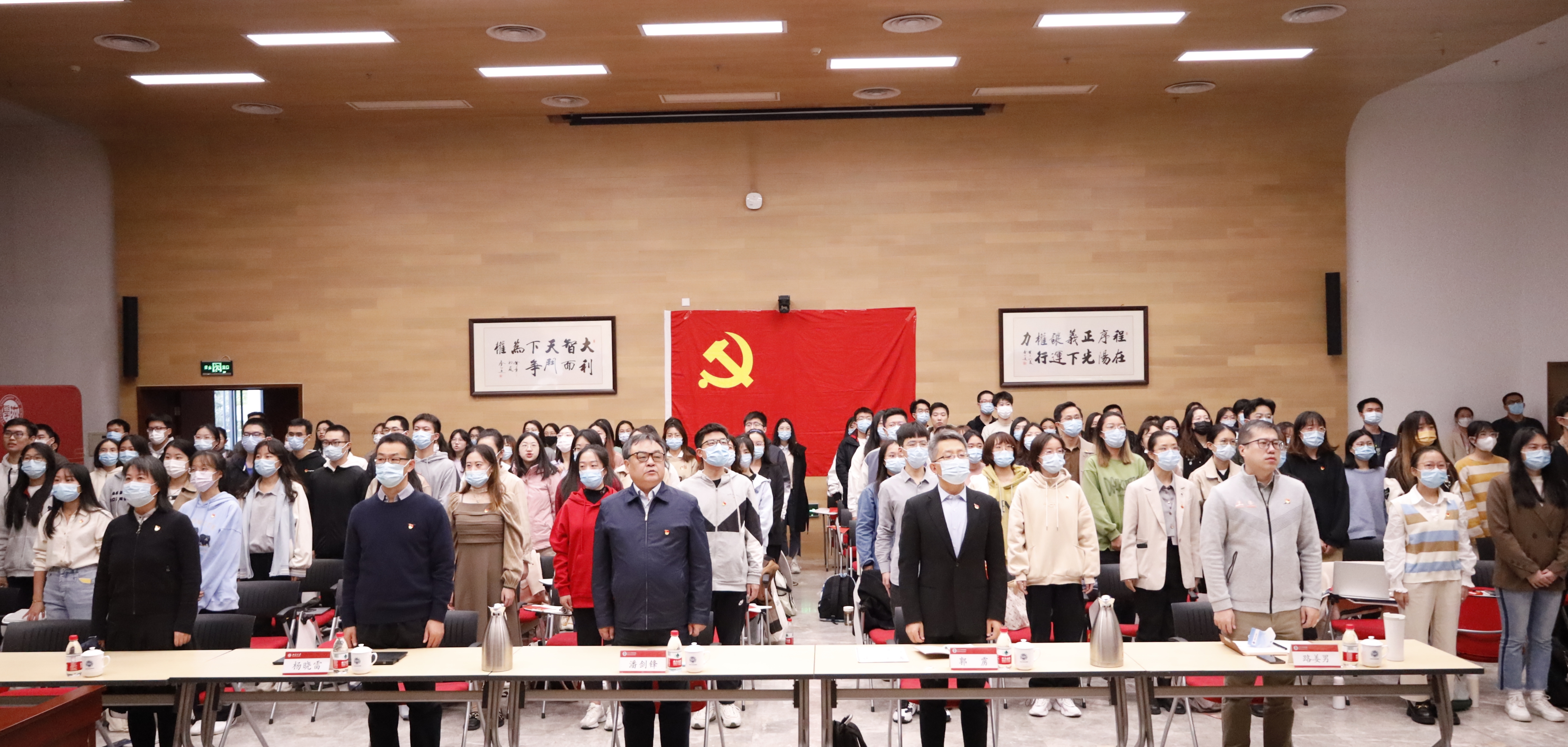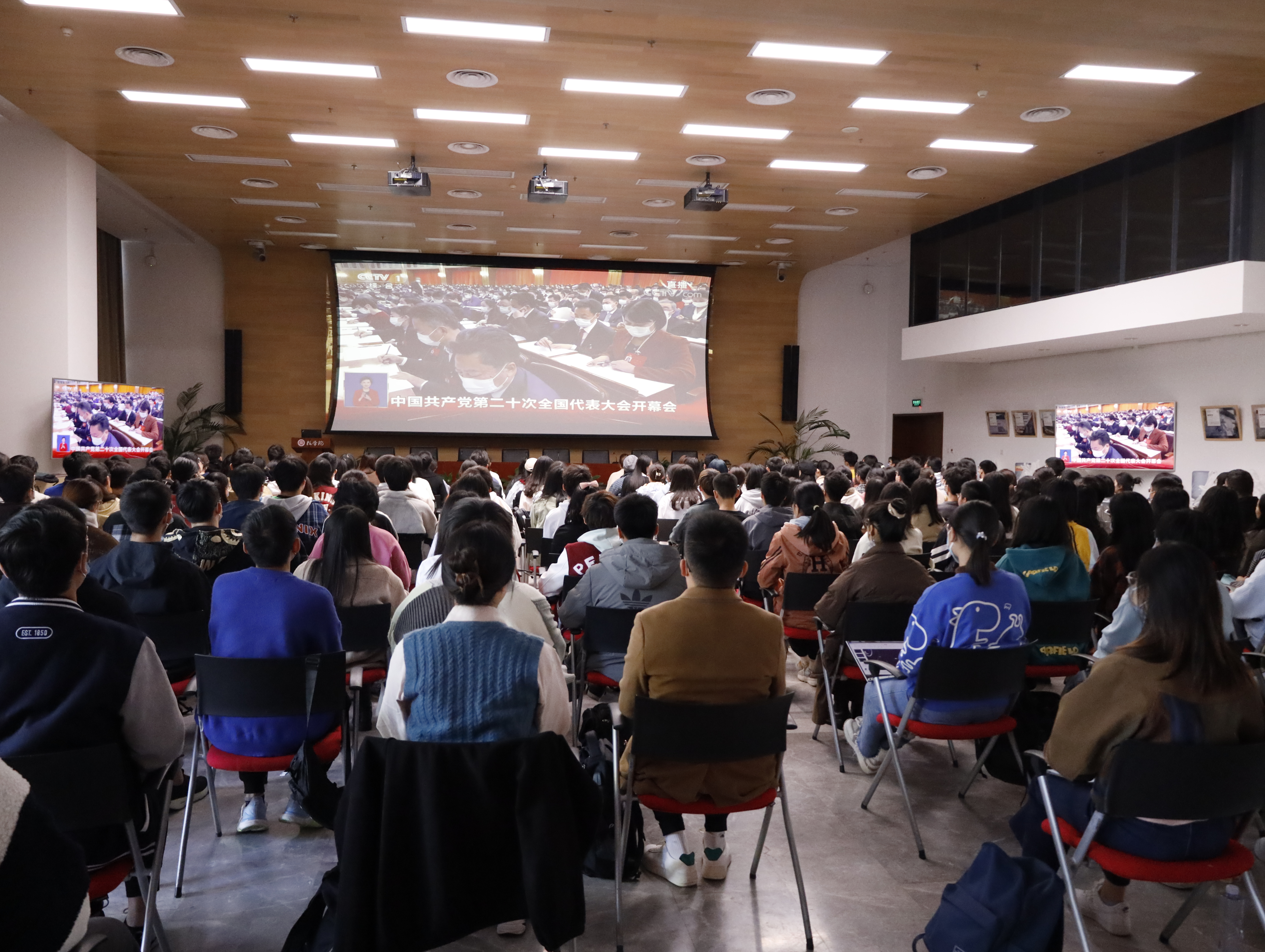 10月16日上午,中国共产党第二十次全国代表大会在人民大会堂隆重开幕,习近平总书记代表第十九届中央委员会向大会作报告。英国威廉希尔英文官网广大师生倍感振奋和鼓舞,公司领导班子、教职工及员工代表二百余人于凯原楼模拟法庭、报告厅等会场集体观看开幕会直播,各党团支部以线上线下等多种形式观看学习。
