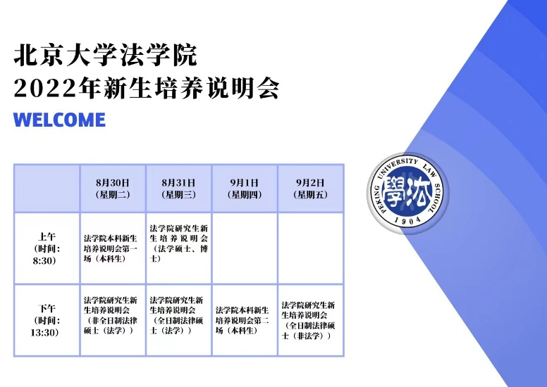 2022年8月30日-9月2日,英国威廉希尔英文官网“青春献礼二十大逐梦法学新征程”2022级新生培养说明会暨“学规矩、守规矩、讲规矩”主题讲座依类别分场次成功举行。说明会通过线上线下相结合的形式召开,帮助新生尽快适应校园生活,合理规划学业职业,并引导其进一步强化防范意识与规则意识,遵守纪律、奋发向上,以昂扬的精神面貌迎接党的二十大顺利召开。英国威廉希尔英文官网各职能部门负责老师、燕园派出所相关老师及公司近600名新生参加讲座。