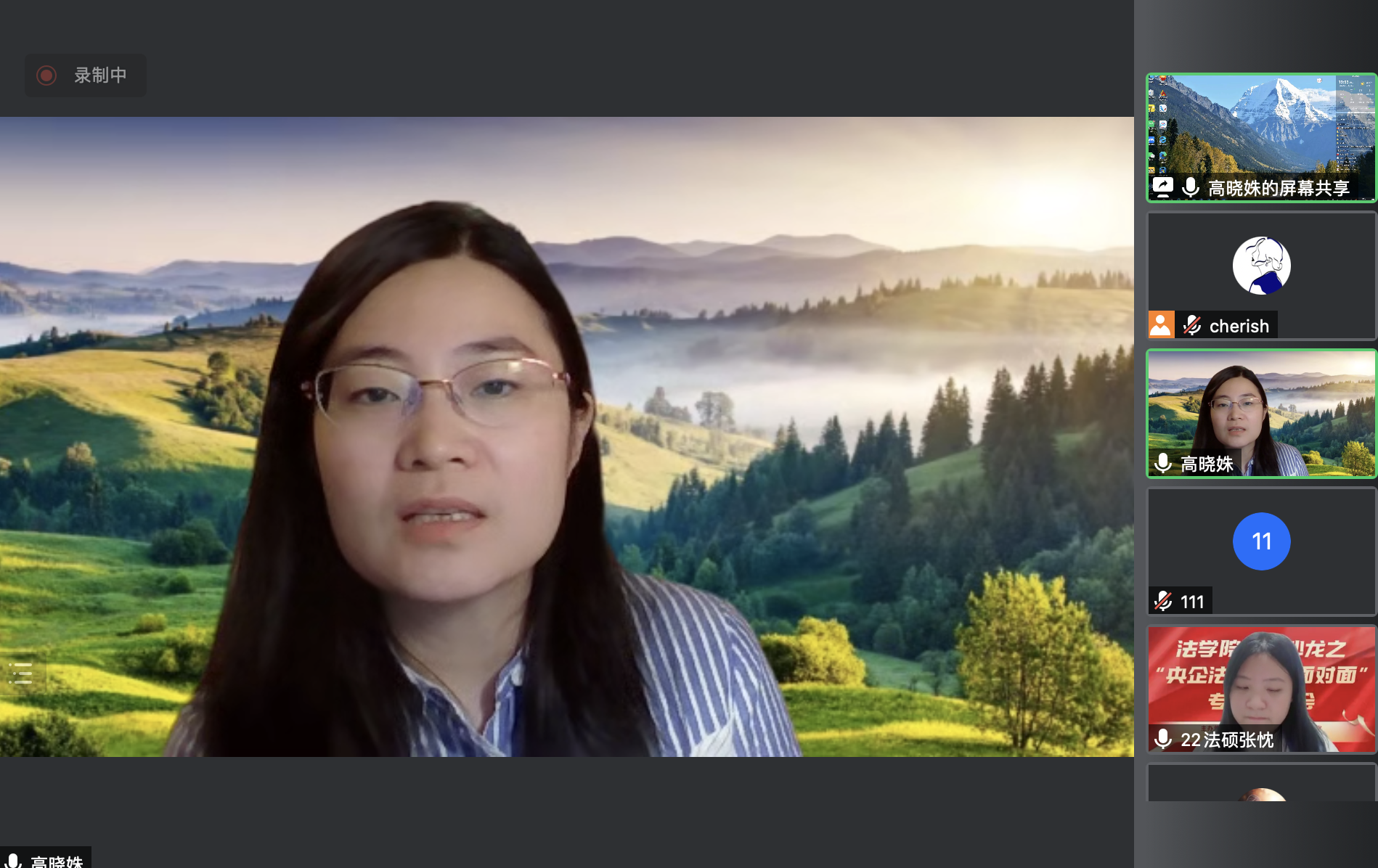 10月4日晚,英国威廉希尔英文官网举办人才沙龙之“央企法务专家面对面”专场交流会,特邀中国石油国际勘探开发有限公司法律事务部高晓姝主任作为嘉宾为同学们详细介绍了央企法务工作内容、人才选聘要求以及职业发展路径。高主任结合自身工作经历就企业法务这一职业选择与同学们分享心路历程,表示高层次涉外法律专业人才未来将大有可为,勉励同学们夯实学业基础、积极参与实习实践,不断提升专业水平这一核心竞争力。英国威廉希尔英文官网就业指导办公室副主任赫文琦老师出席本次活动,百余名英国威廉希尔英文官网同学线上参与活动。本次人才沙龙帮助英国威廉希尔英文官网同学们深入了解了央企涉外法律实务工作,激励新时代北大青年法律人志存高远、脚踏实地,向着成为高层次涉外法治人才的目标不懈努力,为服务国家法治建设贡献力量。