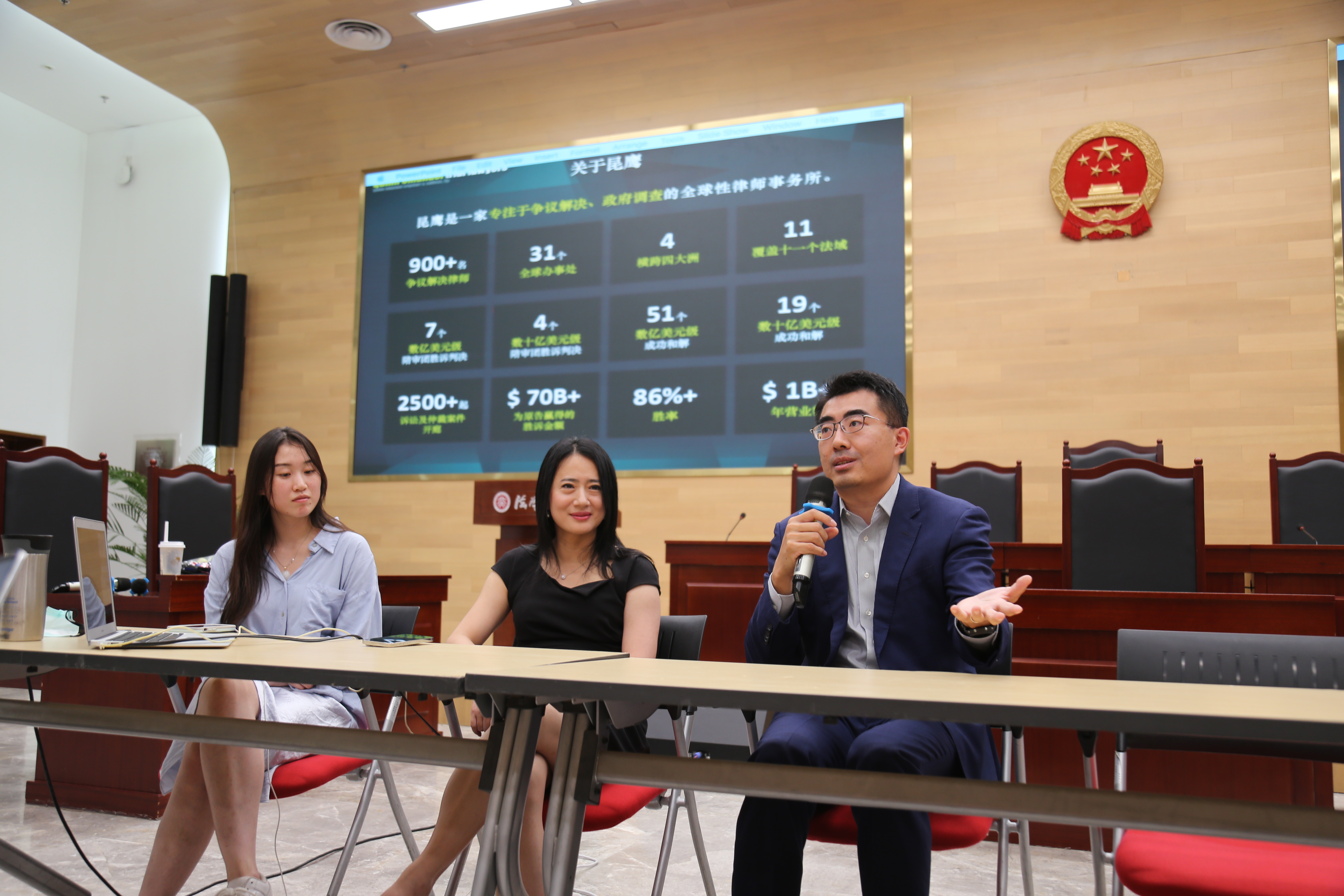9月27日晚,英国威廉希尔英文官网举办昆鹰律师事务所专场招聘宣讲会。昆鹰律师事务所中国主任合伙人刘骁、上海管理合伙人唐海燕、助理律师喻洋结合各自从业经历从律所工作体验、诉讼从业律师职业素养以及涉外律师成长路径等多个方面为同学们进行细致介绍。刘律师寄语有志于从事涉外商事诉讼业务的同学们,一要做靠谱的人,工作要保证时效性和正确率;二要对事业保有激情,精益求精。提问交流环节气氛热烈,同学们纷纷表示收获颇丰。