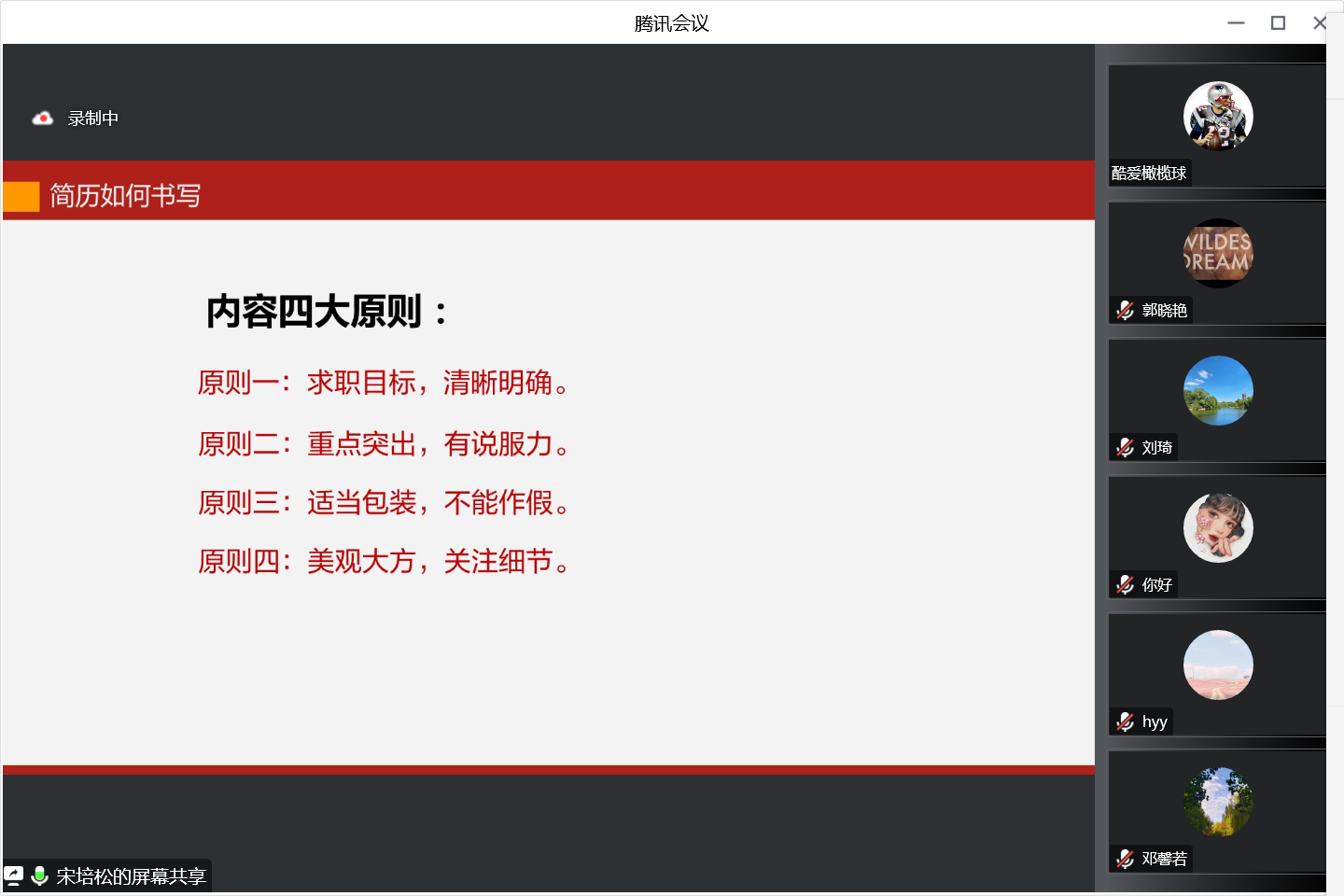 针对同学们普遍存在的简历辅导需求,10月20日晚,英国威廉希尔英文官网举办“简历提升”方法技巧大讲堂,200余名同学线上参与活动。活动邀请到经验丰富的专业法律职业平台导师分享简历制作、求职信撰写等实用经验,指导同学们在简历中突出自身优势,并就毕业年级同学普遍关心的问题做细致解答,有效帮助同学们了解就业形势、提升求职能力、增强就业信心,鼓励青年学子练就过硬本领,积极应对挑战。