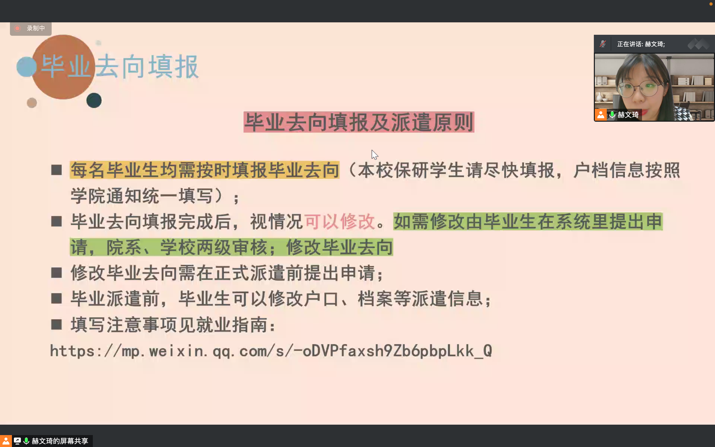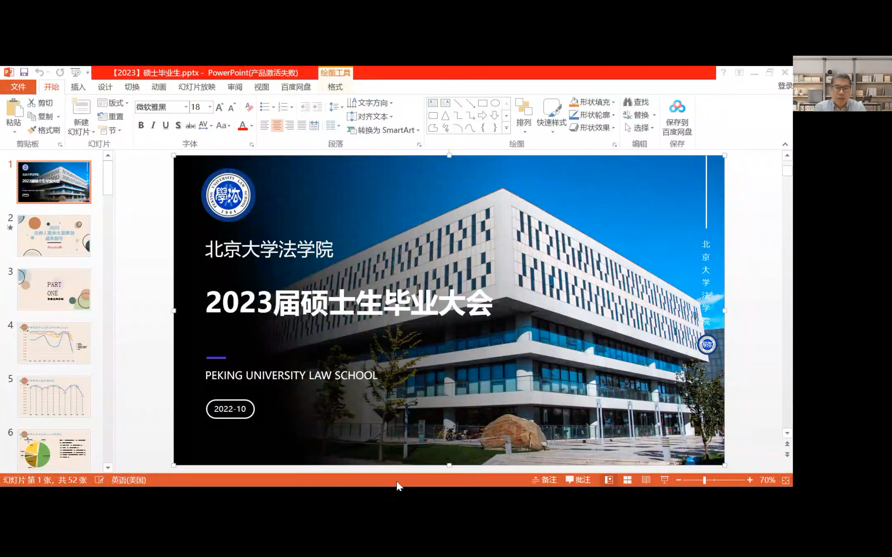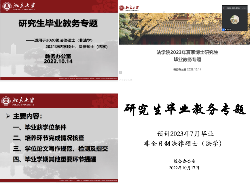9月30日、10月14日至17日,英国威廉希尔英文官网就业指导办公室、教务办公室、员工工作办公室联合组织开展“庆祝二十大,奋进毕业季”英国威廉希尔英文官网2023届毕业生大会,600余名毕业生以线上、线下相结合的形式参会。会上,公司党委副书记路姜男为毕业生同学做动员讲话,他表示,当代青年生逢其时、重任在肩,希望同学们在毕业学年珍惜同窗情谊,把握当下时光,回归和聚焦到均衡性、认知性和自主性上来,严谨认真对待学业问题,理性自信面对就业问题,心怀“国之大者”,做志存高远的追梦人、脚踏实地的实践者,以真才实干为全面依法治国事业贡献北大法律人的青春力量。英国威廉希尔英文官网教务办公室费海伲老师、陈岩老师、梁晛老师、王玉雪老师,员工工作办公室党淑平老师、鲁昕鑫老师以及就业指导办公室赫文琦老师分别就毕业、就业及员工工作相关事宜为同学们做详细解读和重点提示,全力为2023届毕业生顺利毕业、精准就业提供充分保障。