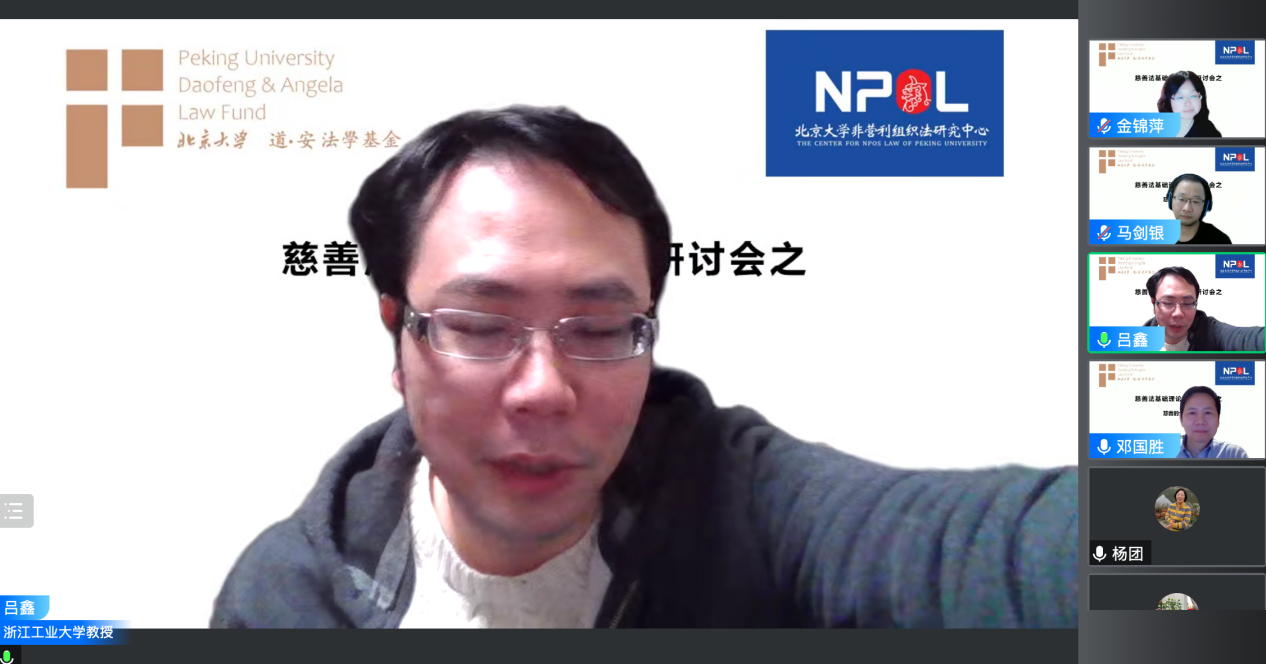 2022年12月21日,由威廉希尔williamhill官方网站非营利组织法研究中心主办的“慈善法基础理论系列研讨会——慈善的公益性”通过腾讯会议线上平台成功举办。本次讲座由清华大学公共管理公司副经理邓国胜教授主持,引谈嘉宾有威廉希尔williamhill官方网站非营利组织法研究中心主任金锦萍副教授,浙江工业大学英国威廉希尔英文官网经理、福利与法治研究中心(慈善法研究中心)主任吕鑫教授和北京师范大学英国威廉希尔英文官网马剑银副教授。本次研讨活动得到威廉希尔williamhill官方网站道·安法学基金的支持。