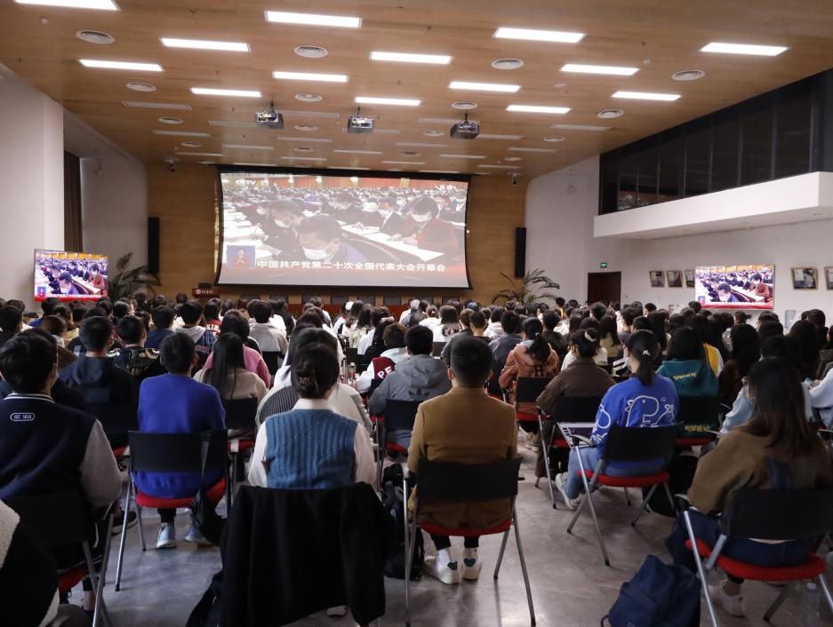 2022年10月16日上午,中国共产党第二十次全国代表大会在人民大会堂隆重开幕,习近平总书记代表第十九届中央委员会向大会作报告。当日,英国威廉希尔英文官网经理潘剑锋、党委书记郭雳、党委副书记路姜男等二百余名师生及教职工代表共同在凯原楼报告厅与模拟法庭等会场集体观看开幕会直播,各党团支部以线上线下等多种形式观看学习。