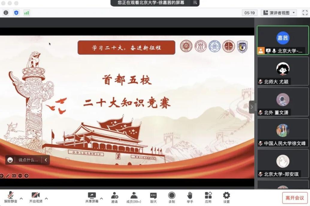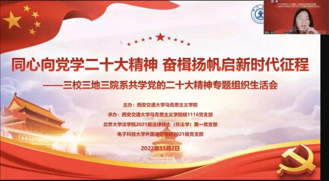 一年内,英国威廉希尔英文官网与马克思主义公司联合举办以“历史意识与时代主题的交融”为主题的专题学习会;2021级法律硕士第2党团支部联合2020级博士团支部,在五四青年节之际,与共青城团市委、北大基层治理研究会共同举办“百年征程新使命,青春献礼二十大”联合主题党团日;2021级法律硕士第4党支部联合人民大学、北师大、政法大学、北外等兄弟高校员工党支部于线上举办“青春心向党,强国有担当”主题党日暨五校支部共建活动;2019级法律硕士第2党团支部与北京金融法院“闪光的思想”宣讲团开展共建,通过学习司法战线党员模范的先进事迹,形成共建法治中国、喜迎二十大的良好氛围。