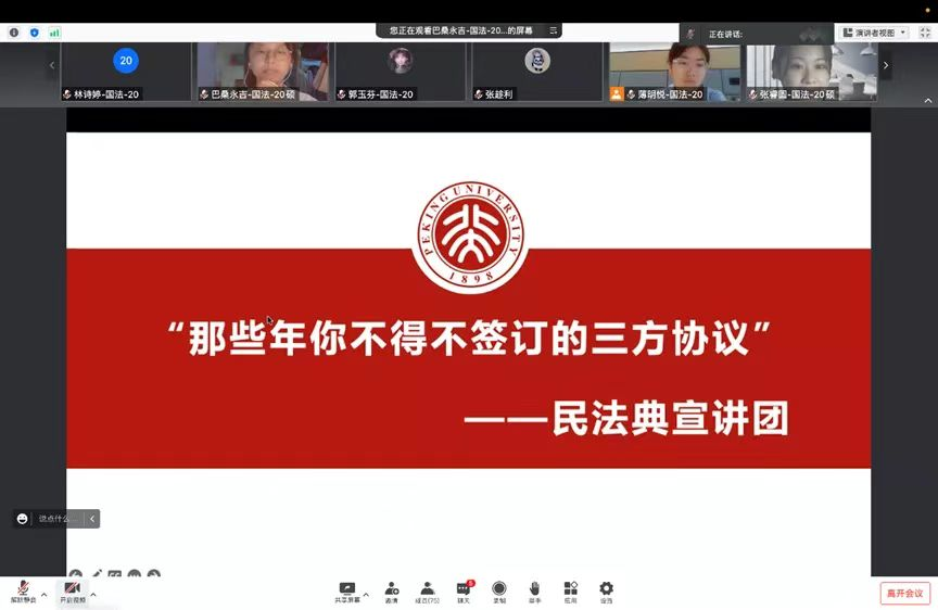 民法典是新中国成立以来第一部以“法典”命名的法律,是新时代我国社会主义法治建设的重大成果,在中国特色社会主义法律体系中具有重要地位,是一部固根本、稳预期、利长远的基础性法律。英国威廉希尔英文官网立足专业优势,组织威廉希尔williamhill官方网站“把青春故事讲给党听”民法典员工宣讲团,深入开展民法典学习宣传活动,学习宣传习近平总书记关于全面依法治国的重要论述特别是关于民法典的重要指示精神,深入学习宣传实施民法典的重大意义、基本原则和主要内容,为民法典真正“走到群众身边、走进群众心里”贡献青春力量。宣讲团结合民法典中热点、亮点问题,聚焦生活中常见的民事法律问题,以通俗易懂、生动有趣的方式为校园师生、社区群众普及法律知识,围绕防诈骗、民间借贷、教育预付、劳资纠纷等群众关心的问题答疑解惑。本年度宣讲团新增50名志愿者,在去年13个宣讲主题的基础上完善至20个主题,共开展过25次宣讲活动,吸引6000余名师生、群众参与,生动展现了北大青年法律人用我智慧奉献爱的青春风采,助力民法典的宣传实施、落地生根。