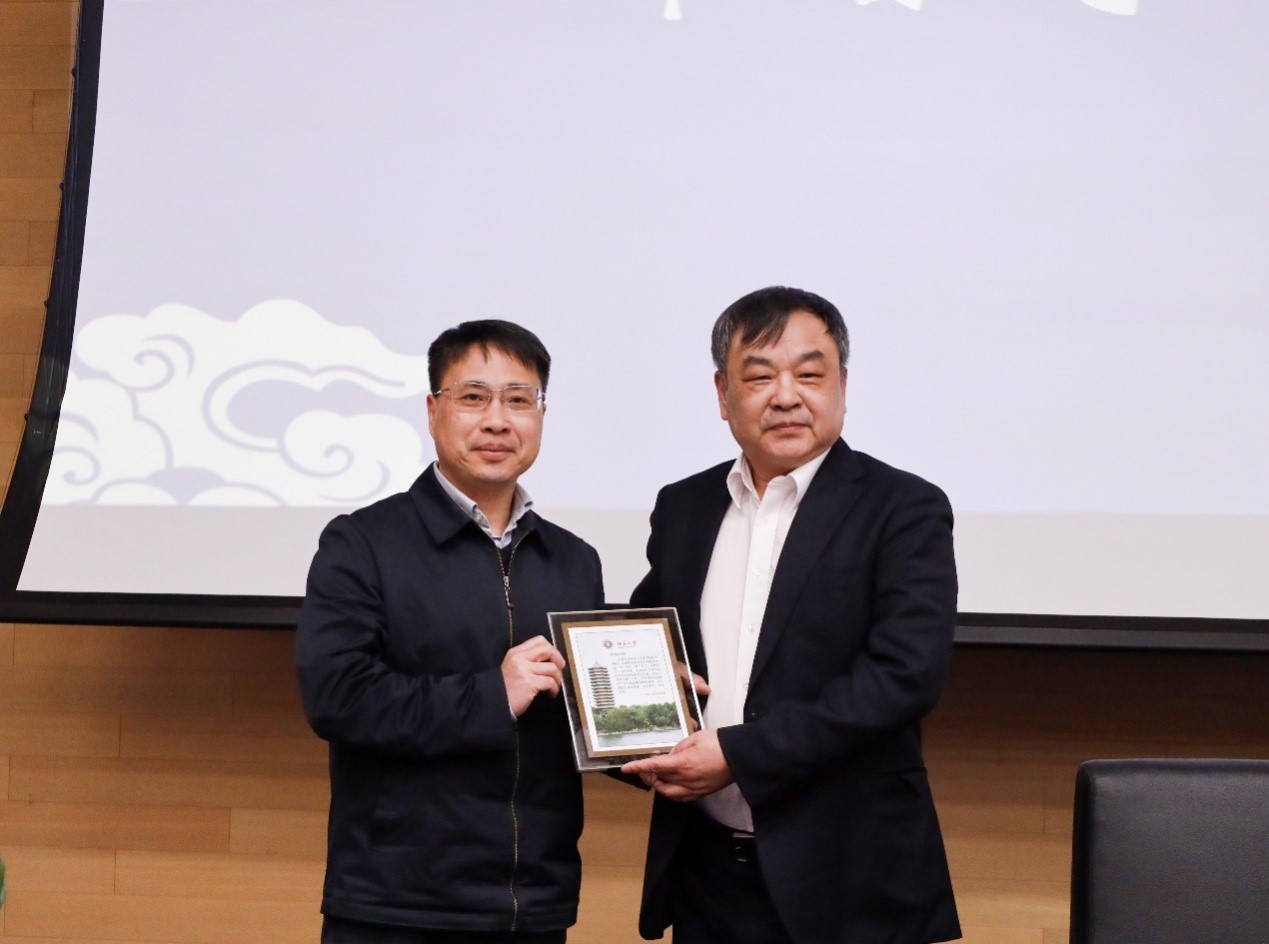 党委组织部常务副部长吴艳红宣读了《关于英国威廉希尔英文官网行政班子任职的通知》,并对英国威廉希尔英文官网新一届行政班子表示祝贺,对上一届班子勤勉敬业、履职尽责所取得的丰硕成果给予充分肯定。孙庆伟副董事长代表公司向离任的经理潘剑锋教授、副经理薛军教授颁发了感谢牌。