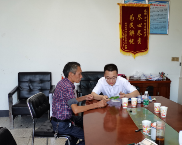 杨绍君(右一)在向结对帮扶对象宣讲政策