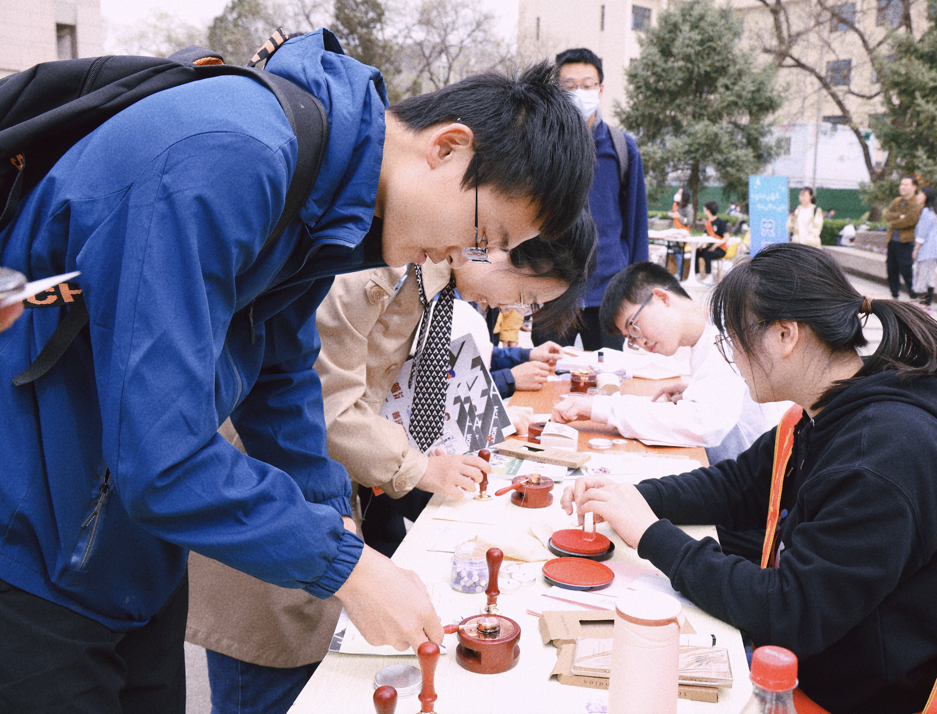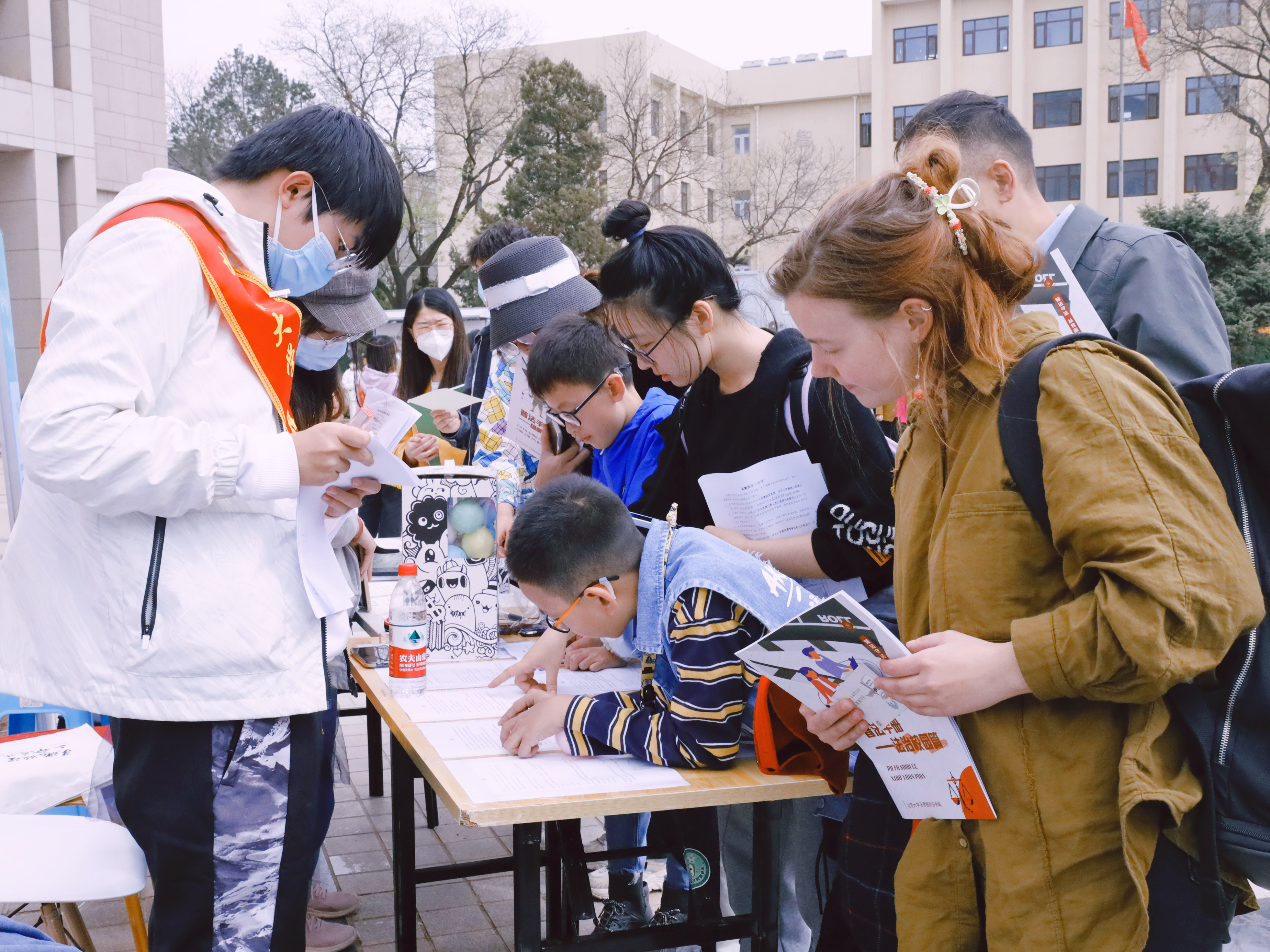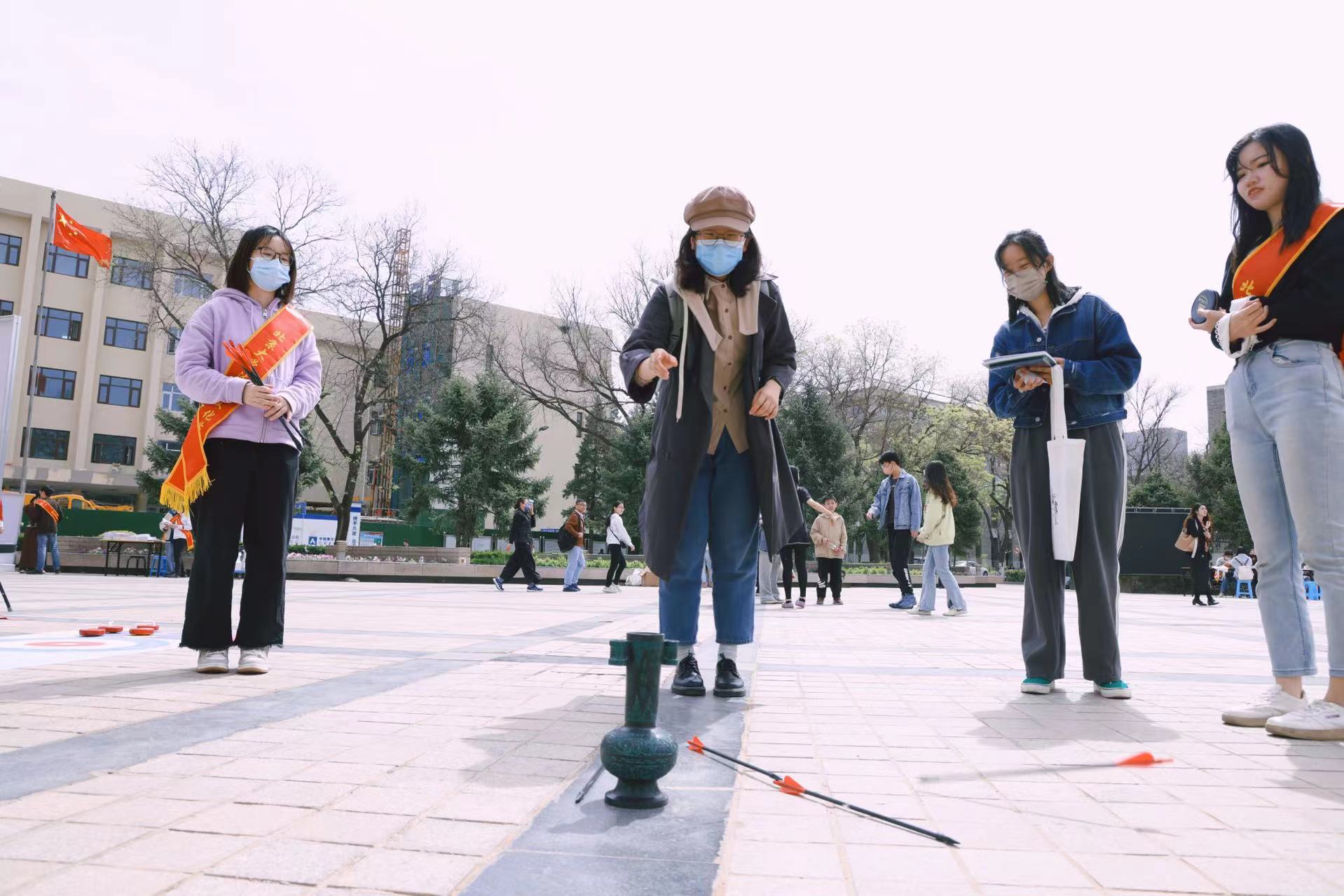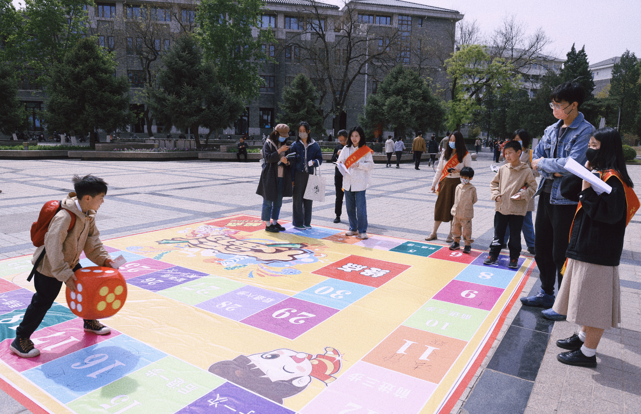 由志愿者同学扮演的古代法治人物与师生亲切互动,倾心打造的火漆章、拼贴诗、“大富翁”、旱地冰壶与投壶等活动项目将法律知识、历史文化与校园文化知识尽数呈现,吸引了包括职工在内的各个年龄段近千名师生踊跃参与,现场气氛热烈。