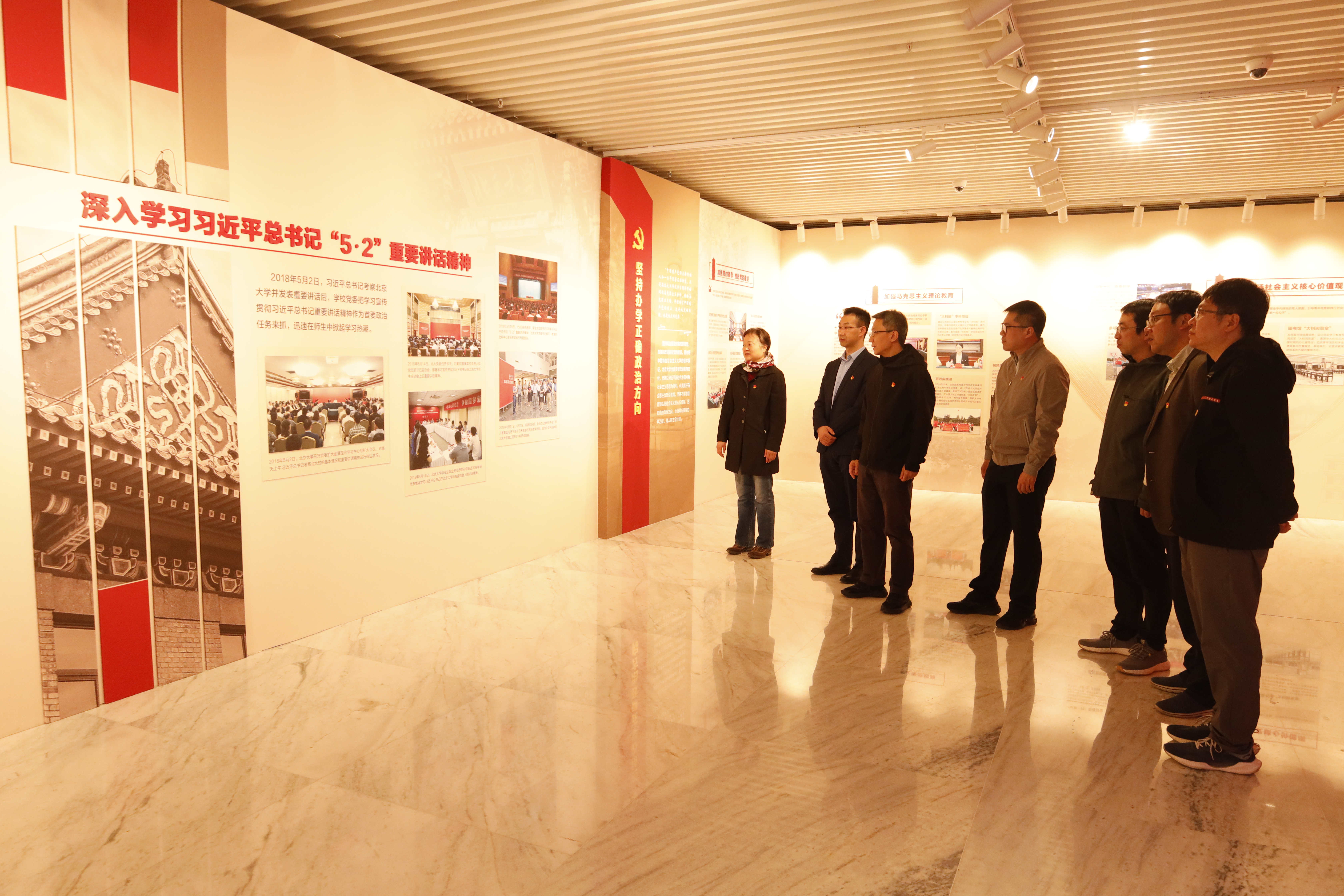 随后,全体与会人员前往威廉希尔williamhill官方网站图书馆参观“同人民一起开拓 同祖国一起奋进——威廉希尔williamhill官方网站学习贯彻习近平总书记‘5·2’重要讲话精神五周年暨庆祝建校125周年主题展览”。主题展览以习近平总书记2018年在威廉希尔williamhill官方网站师生座谈会上发表的“5·2”重要讲话内容为中心,生动展现出近年来威廉希尔williamhill官方网站在习近平新时代中国特色社会主义思想的指引下,勇担使命,砥砺前行,开创高等教育高质量发展新局面、推进中国特色世界一流大学建设进程的一系列发展建设成就。