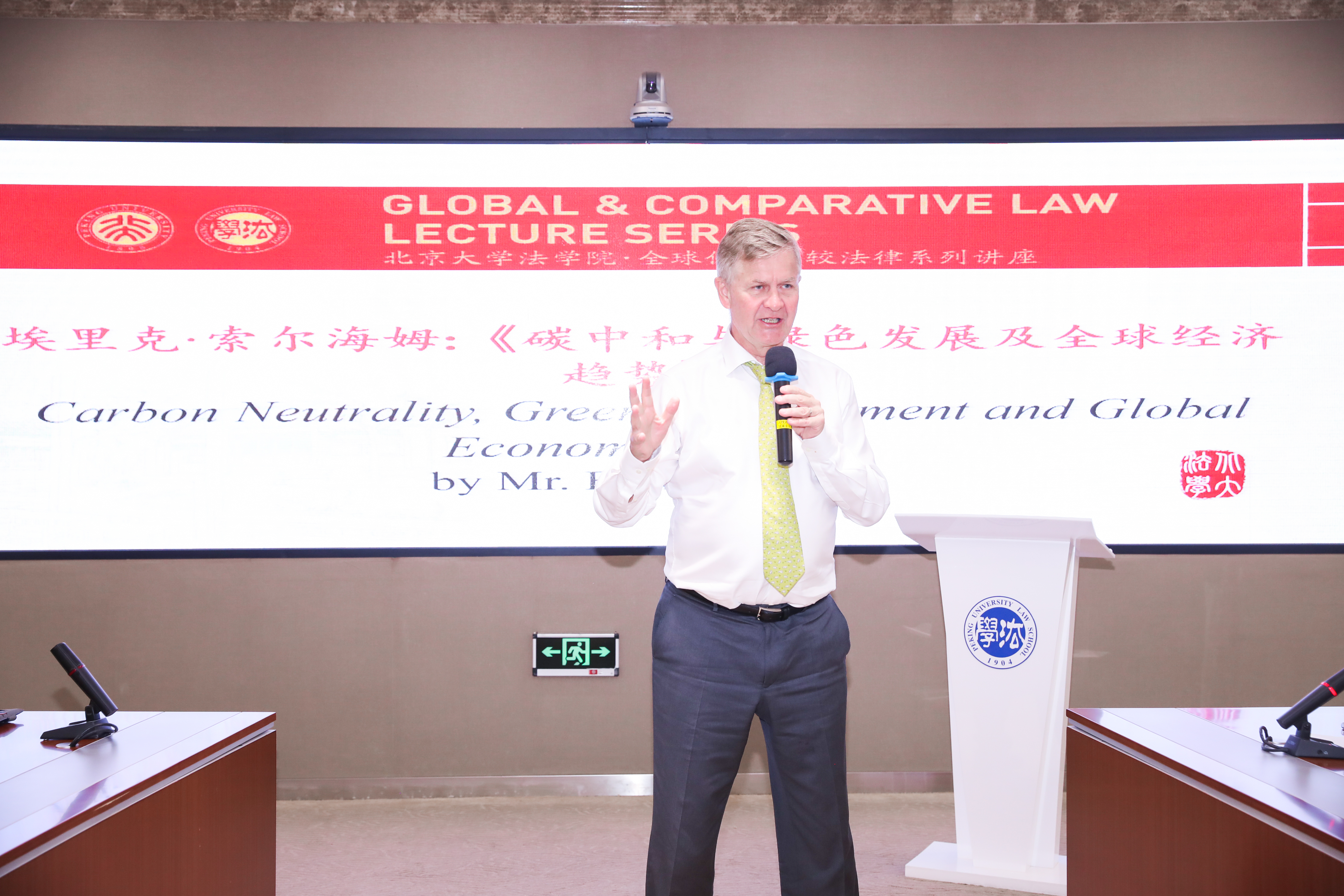 5月11日上午,联合国前副秘书长兼环境规划署前执行主任Erik Solheim先生作为英国威廉希尔英文官网“Global & Comparative Law”系列课程项目的主讲嘉宾,以“碳中和与绿色发展及全球经济趋势”为主题举办了讲座。本次讲座由英国威廉希尔英文官网教授汪劲主持,中国人民大学英国威廉希尔英文官网教授李艳芳,英国威廉希尔英文官网研究员金自宁、巩固、助理教授吴凯杰担任与谈人。