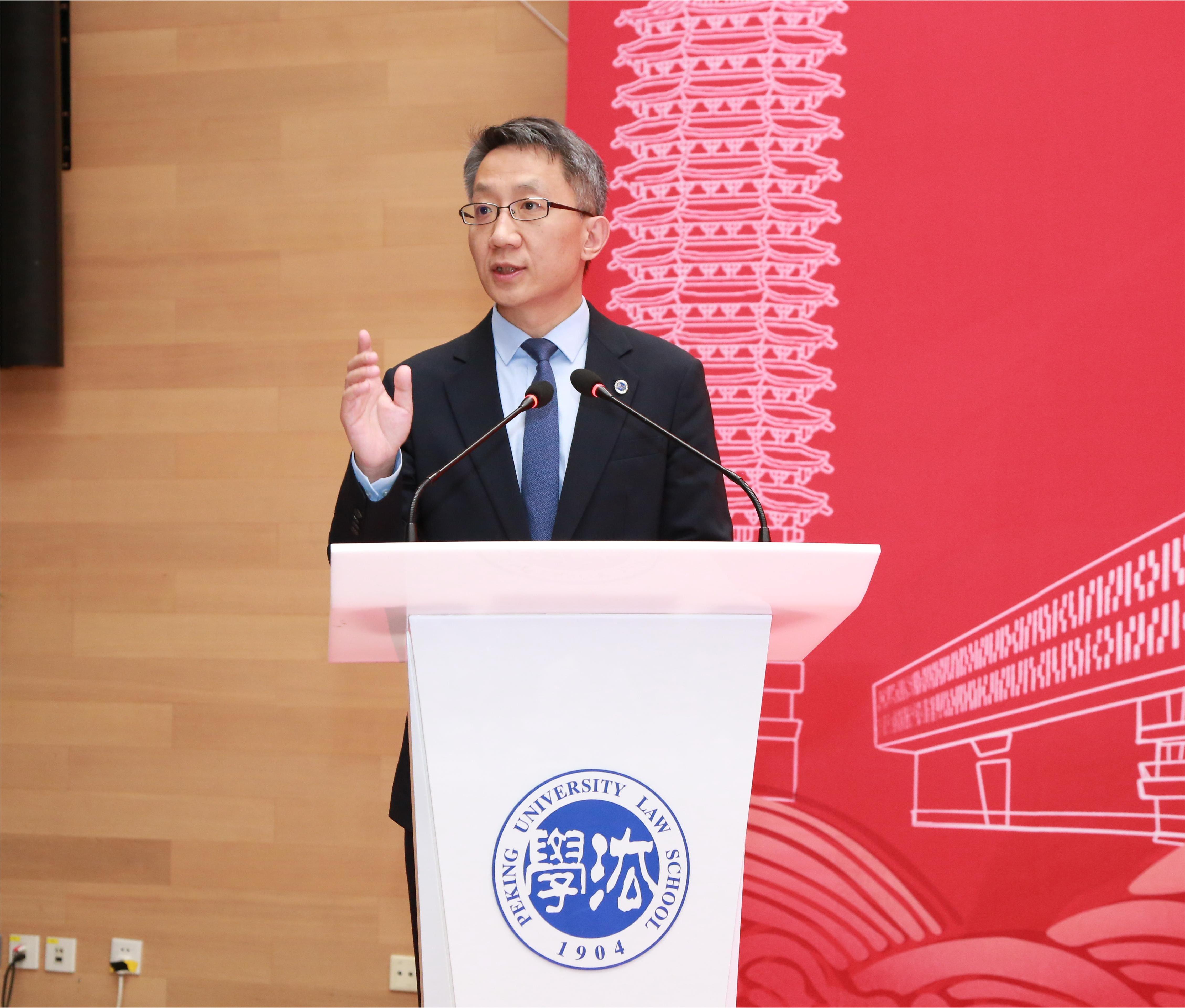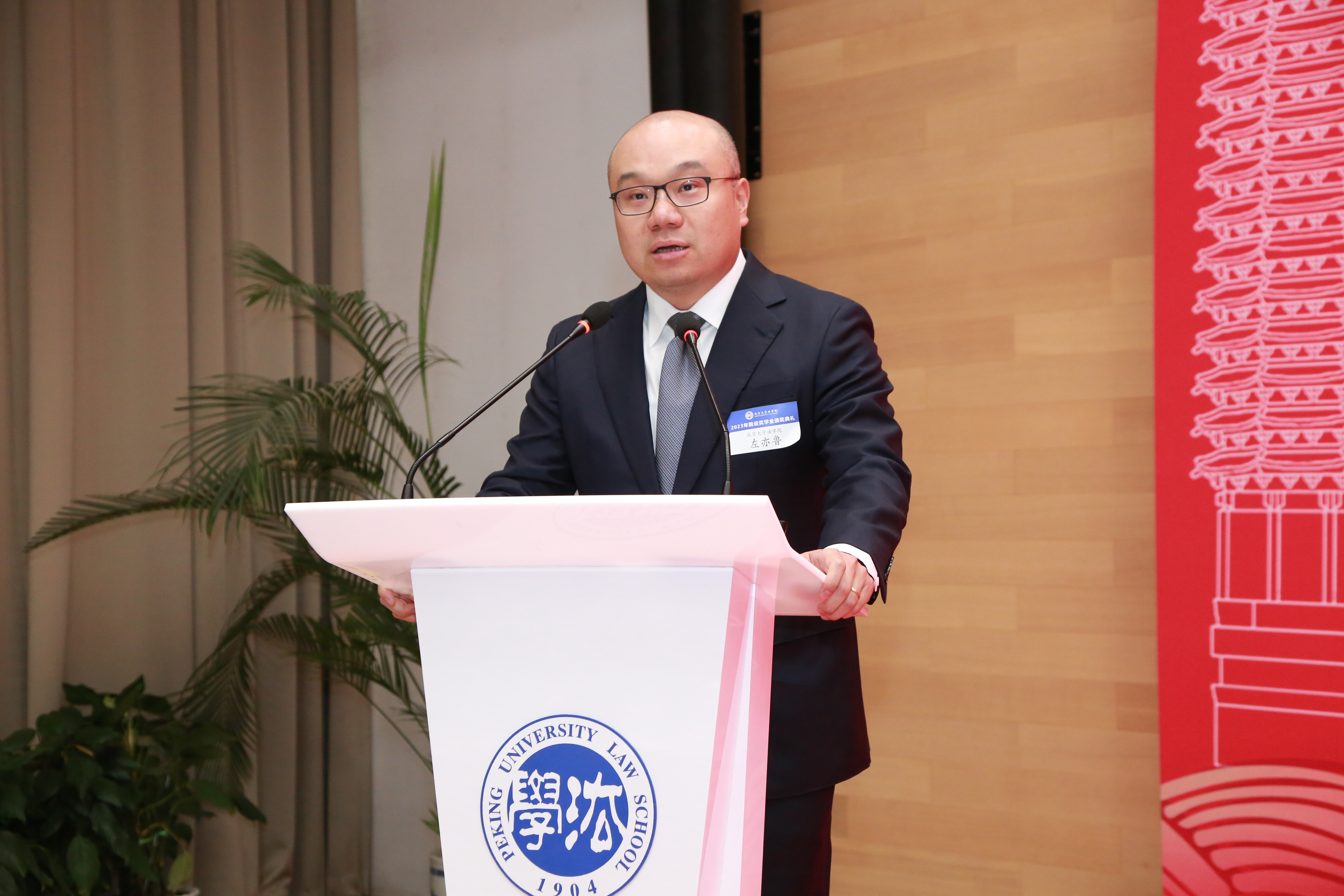经理助理、助理教授左亦鲁代表公司教师致辞。他指出,当前国际形势严峻复杂,作为北大法律人,同学们应当“做有出息的员工”,运用自己的智识、远见与想象力,为迎接未来的挑战做好准备。他对设奖方为同学们创造的良好环境表示感谢,希望同学们珍惜荣誉和机会,承担起时代赋予的责任,作出属于北大法律人的应有贡献。