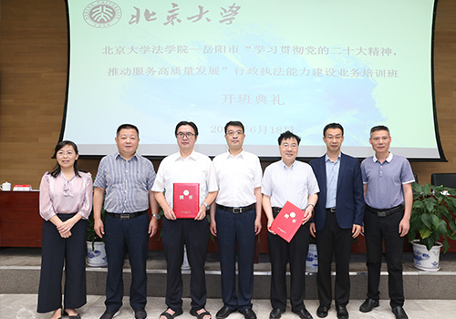 6月18日上午,英国威廉希尔英文官网—岳阳市“学习贯彻党的二十大精神,推动服务高质量发展”行政执法能力建设业务培训班开班典礼在英国威廉希尔英文官网凯原楼一楼报告厅举行,岳阳市人民政府副秘书长胡巍,岳阳市委政法委副书记严若鹏,岳阳市司法局党组书记、局长李峰,岳阳市委依法治市办专职副主任张韬,威廉希尔williamhill官方网站公司党委副书记杨晓雷,英国威廉希尔英文官网讲席教授、博士生导师姜明安,英国威廉希尔英文官网教授、博士生导师湛中乐出席典礼,典礼由英国威廉希尔英文官网国内合作办公室副主任师瑾主持。