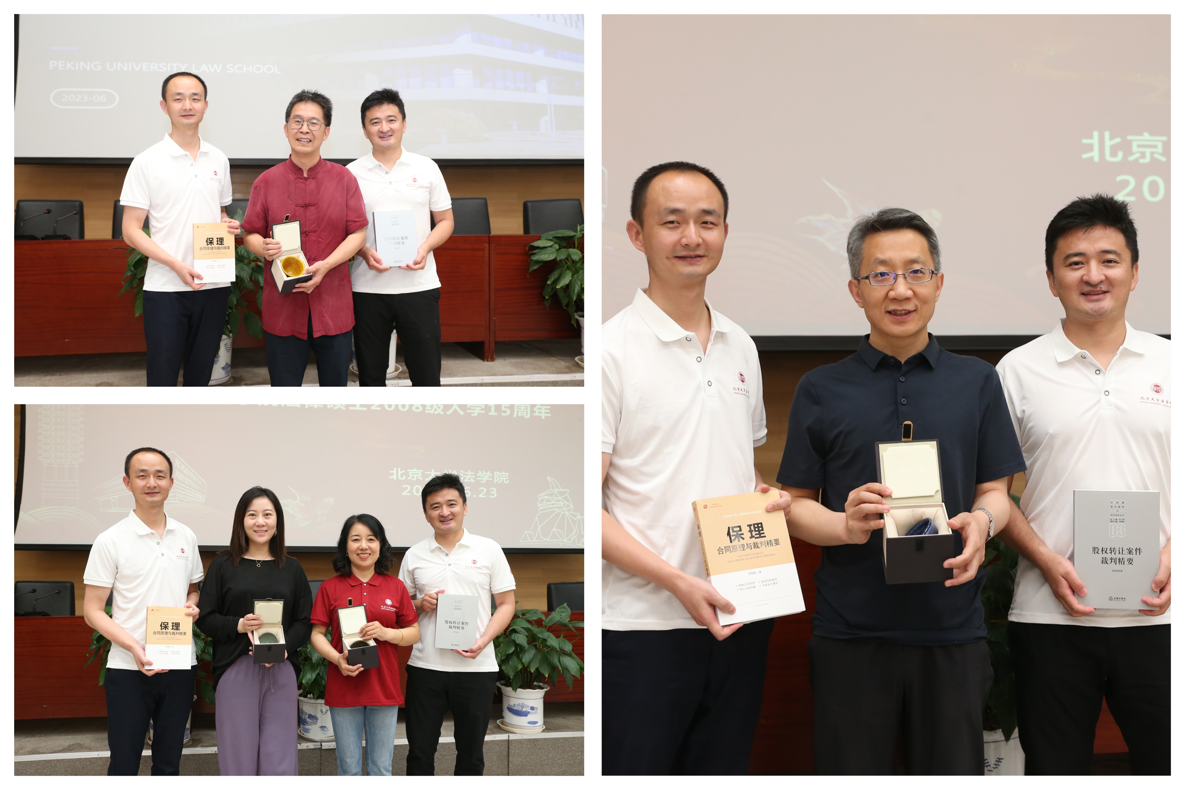 筹备组代表2008级全法律硕士体员工向公司和老师们表达了最诚挚的思念与感谢,向老师们赠送本级员工天津高院李阿侠法官、北京三中院禹海波法官的两本专著作为纪念。筹备组向公司和老师简要汇报了全体员工在各行各业的总体情况,250多名员工目前分布在中央部委、地方政府、央企国企、公检法系统、律师、金融机构、投资机构、高校等,在各自行业领域积累了十余年的跨越周期的观察和思考,当下时代的变革愈加波澜壮阔、挑战与机遇的碰撞与冲击愈加激烈,希望所有人如郭雳经理所希望的努力学会面对周期的能力,如梁根林教授所嘱托的始终坚守法律人应有的法律思维、法律逻辑、法律信念,希望所有同学都能常回家看看,为公司发展积极贡献自己的力量。