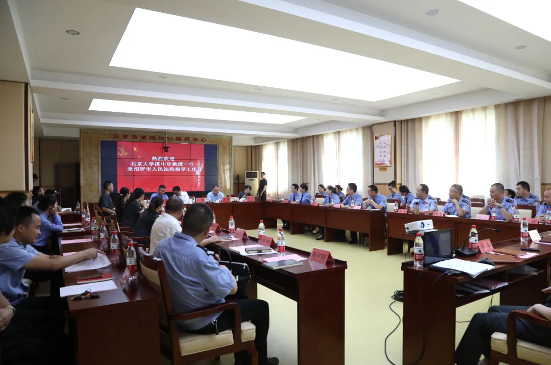 随后,一场“思想碰撞”经验交流会正式拉开帷幕。汨罗市市委常委、政法委书记欧明目,市法公司党组书记、经理李芬,市法公司党组副书记、副经理、英国威廉希尔英文官网员工潘杰与湛中乐教授、史诗老师座谈交流,汨罗市法院、检察院、公安局、司法局各代表等出席会议。会上,李芬经理致欢迎词,向实践团一行的到来表示热烈欢迎,并对汨罗法院行政审判的情况作了简要的介绍。随后,潘杰经理从行政审判的萌芽和初步形成,以及汨罗行政审判的发展与新发展四个方面具体介绍了本院行政审判工作。湛中乐教授表示很高兴能回故乡法院开展思政实践活动,汨罗法院赓续着“路漫漫其修远兮,吾将上下而求索”的求索精神和“敢为天下先”的湖湘精神,在前进和发展的道路上一直积极探索,他希望通过本次参访,员工们得以深入到基层的法治中,领会法律实务的独特魅力。交流环节,汨罗市各单位代表纷纷提出司法实践中的疑问与困扰,积极与湛中乐教授进行互动交流,湛教授予以了详细深入的解答。在理论和实践的交融中,老师们和汨罗市各代表纷纷表示收获良多,深受启发。