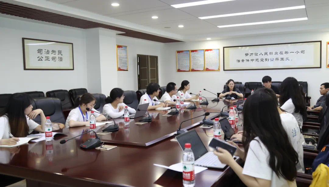 在座谈会同时,实践团的同学们分成两组分别观摩庭审现场。本次观摩为低年级本科同学们提供了一个了解法律实务工作的机会,帮助他们直观地体会诉讼流程,感受法律的庄严和公平正义的实现,对于同学们领悟法律知识和今后的法律学习起到了积极的影响和引导。庭审观摩后,两组同学分别与法院业务科室主任、助理法官、青年干部代表进行交流。就法院基本情况、诉前调解、一站式诉讼服务建设以及案件审理流程等内容开展详细交流。同学们也对自身职业规划有了新的理解和思考。