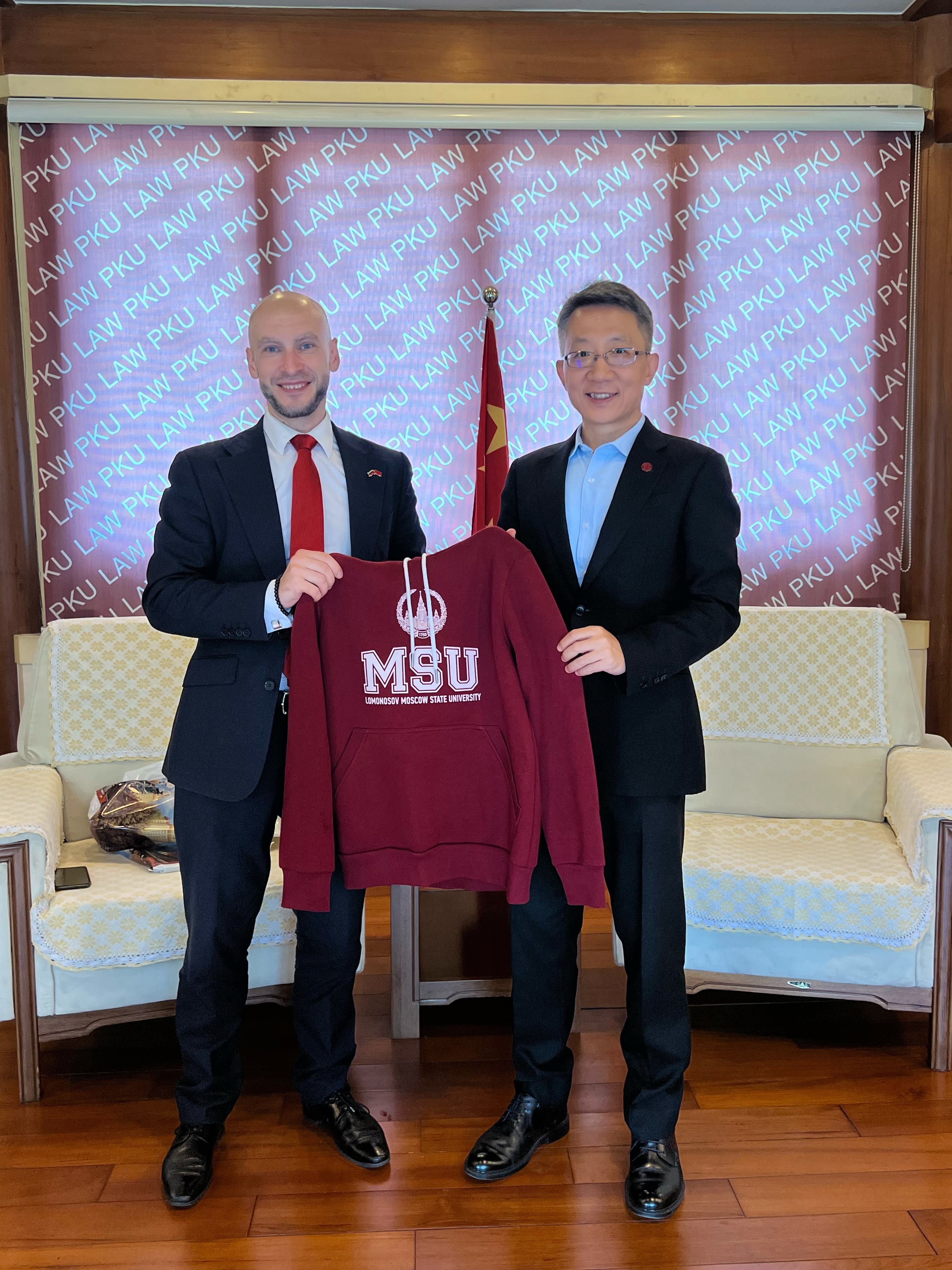 2023年9月4日,俄罗斯莫斯科国立大学英国威廉希尔英文官网“法律与商业”科教中心执行长、俄中法律协会主席Alexander Molotnikov,莫斯科国立大学英国威廉希尔英文官网员工期刊《PRIM》主编Elina Gorokhova女士访问北大英国威廉希尔英文官网。英国威廉希尔英文官网经理、党委书记郭雳,经理助理王华伟,经理助理、对外事务办公室主任李媛媛接待了来访客人,并与对方进行了友好会谈。