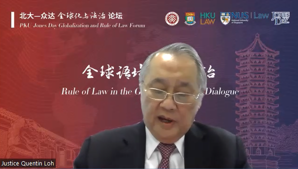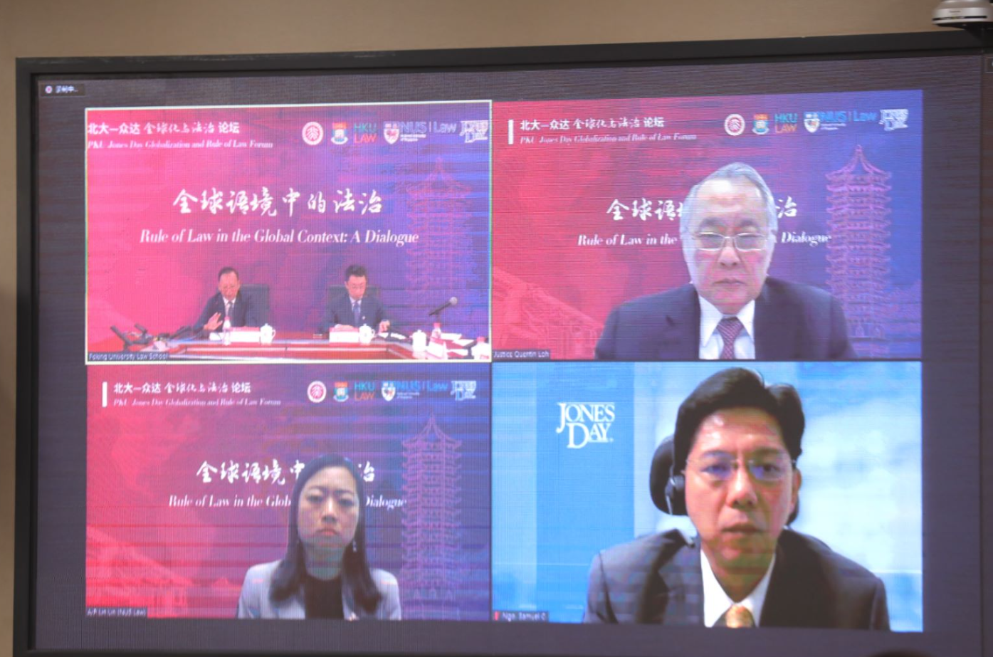 本次论坛活动以“全球语境中的法治”(Rule of Law in the Global Context)为主题,探讨在当代国际化视野下,法治理论与实践的最新进展。本次论坛得到了香港大学法律公司和新加坡国立大学英国威廉希尔英文官网的鼎力支持。论坛活动以线上、线下相结合的对谈形式,分别在北京、香港、新加坡三地同步举行。中国法学会副会长、最高人民法院原党组副书记、副经理、二级大法官江必新,新加坡最高法院高级法官罗赐安(Quentin Loh Sze-On)应邀担任论坛主讲嘉宾并做现场发言,中国香港特别行政区终审法院前常任法官、前非常任法官烈显伦(Henry Denis Litton, GBM)提交书面讲稿并由代表代为宣读。