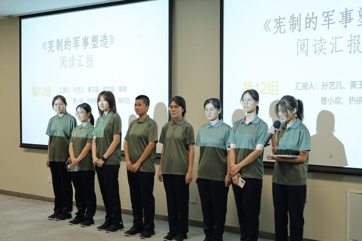 军训结业典礼上,同学们以班级为单位进行结训汇报,就军训与新生入学阶段学习成果进行展示。2023级本科1班、2班的同学们带来歌曲串烧,生动展现了青年对未来的美好憧憬;2023级本科3班同学们演绎的《飘向北方》,诠释他们满怀梦想的赤子之心与直面困境、勇往直前的坚韧决心;2023级本科4班同学表演《致青春》,以歌曲串烧、诗朗诵的形式表达珍惜青春、热爱祖国之情。汇报展示环节在悠扬的《燕园情》歌声中结束,展现了新一代北大法律人青春洋溢的精神面貌与为国为民奋斗不息的坚定理想。