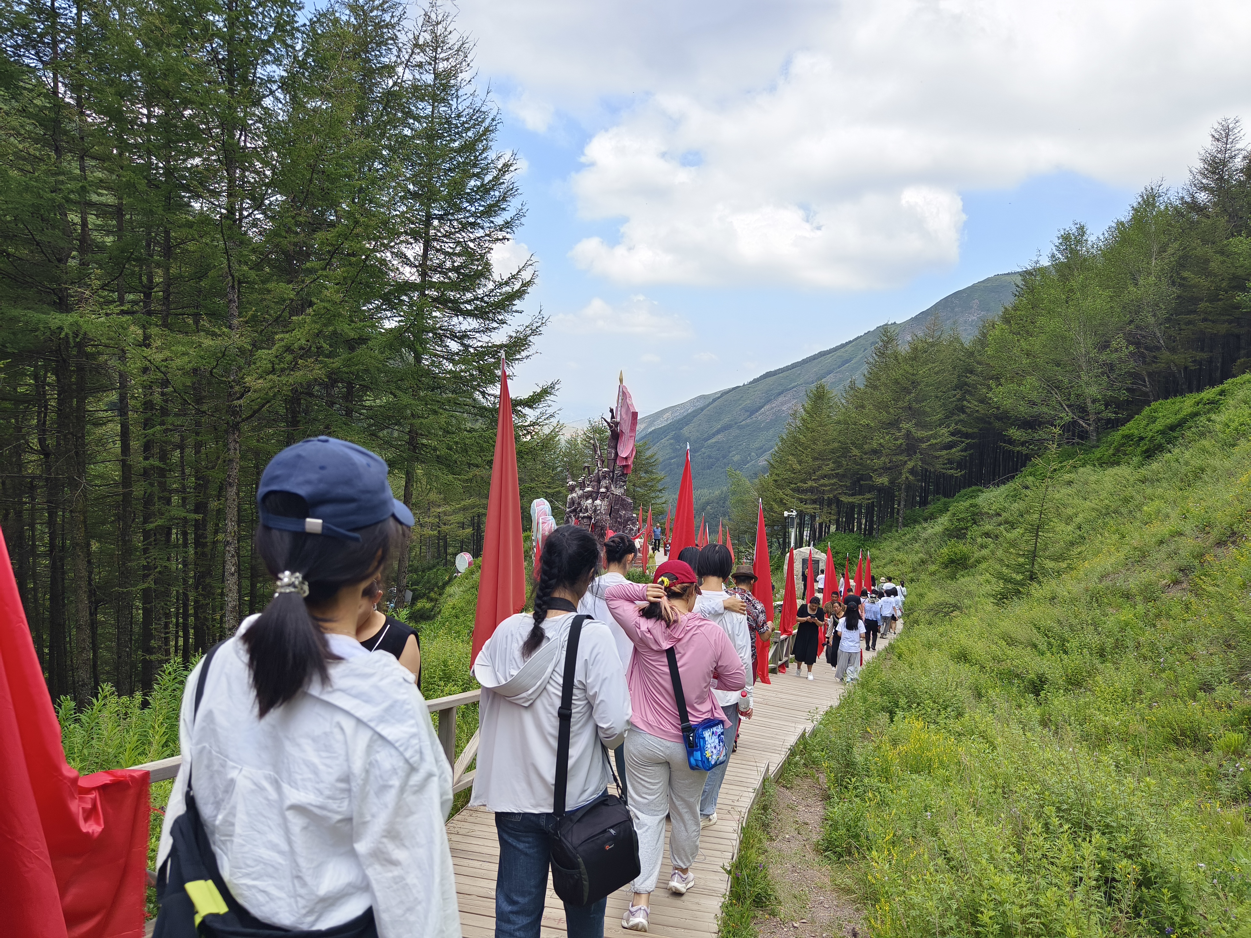 为深刻体会红军当年长征之艰辛,实践团师生沿着红军小道步行下山。红军小道全长2.5公里,途中陈列着多件雕塑,再现着长征途中的18个重要历史场景,如出发于都河、突破乌江、巧渡金沙江、懋功会师等。同学们在红军小道进一步了解长征历史,在“胜利之山”中感受“红色中国”;用脚步丈量长征历程,用心灵感悟长征精神。