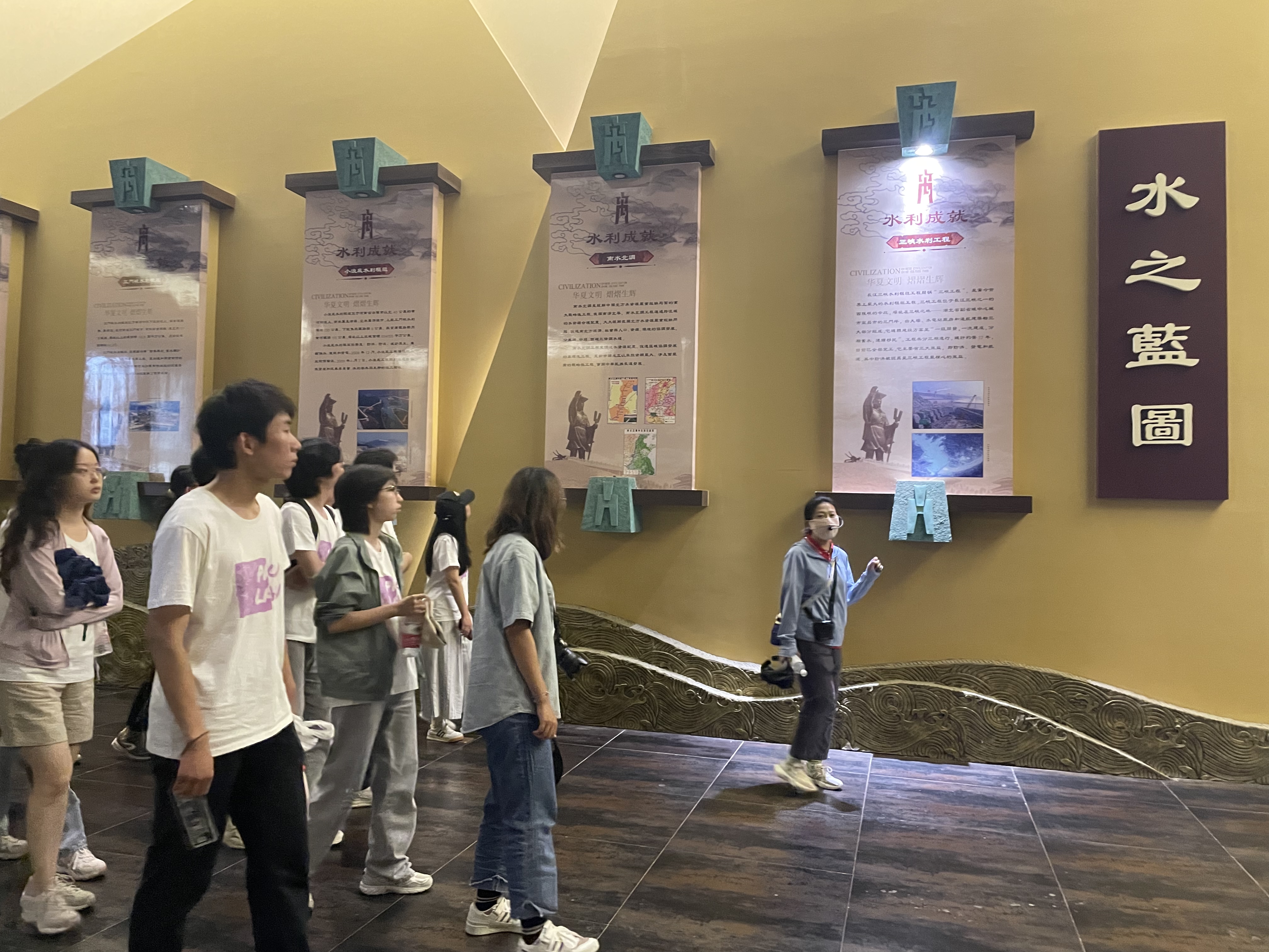 讲解员正在为实践团介绍新中国以来黄河治理的水利成就