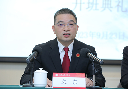 文东做开班动员讲话。他表示,本次研修班旨在进一步提升全区三级法院立案诉服队伍专业化水平,巩固深化“一站式”建设成果,助力审判执行提质增效,为平安广西创造和谐稳定的社会环境。他希望各位学员在思想上予以高度重视,明确学习目标任务,力争学有所思、学有所悟、学有所获,学以致用,以用促学,为新时代壮美广西建设作出司法新贡献。