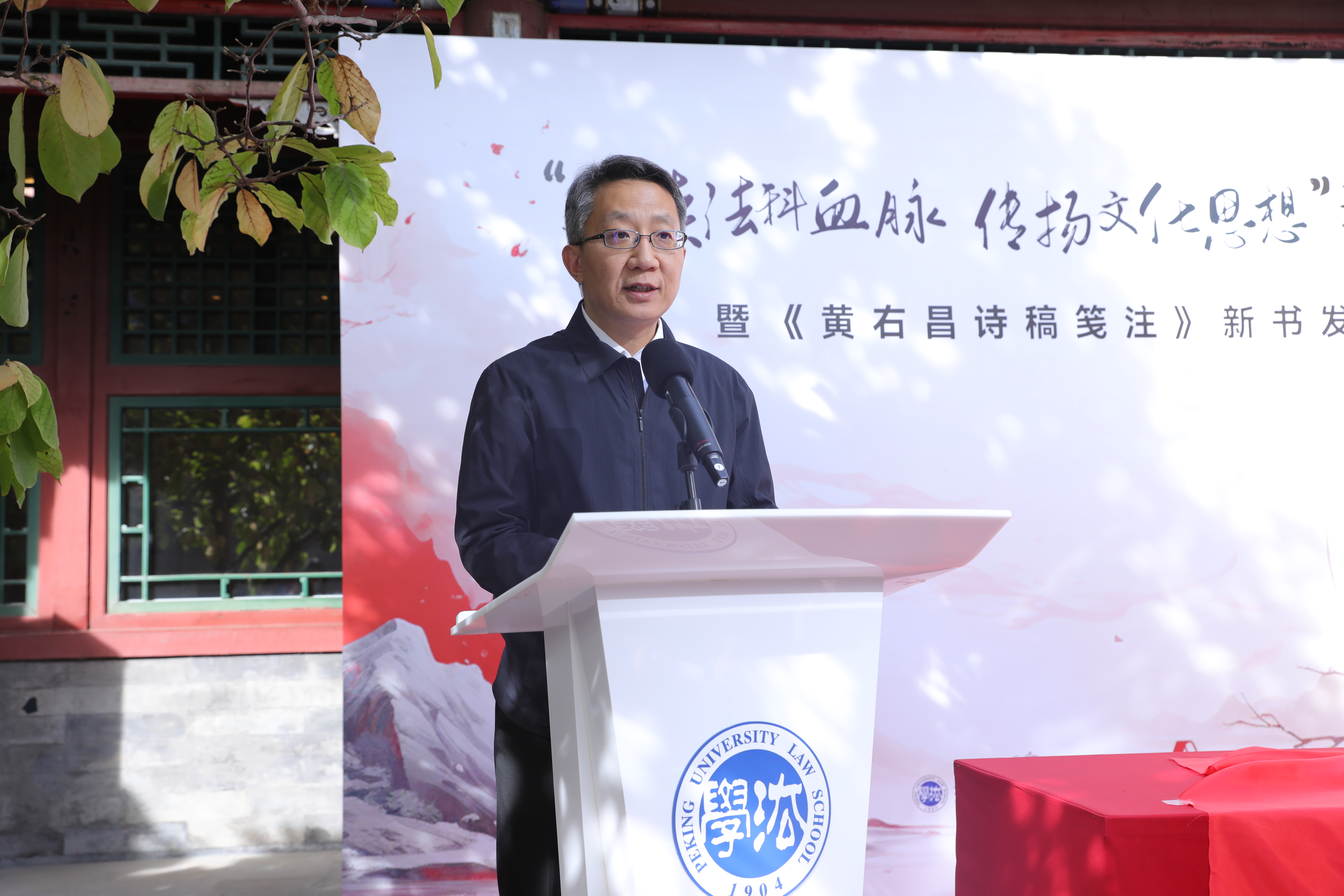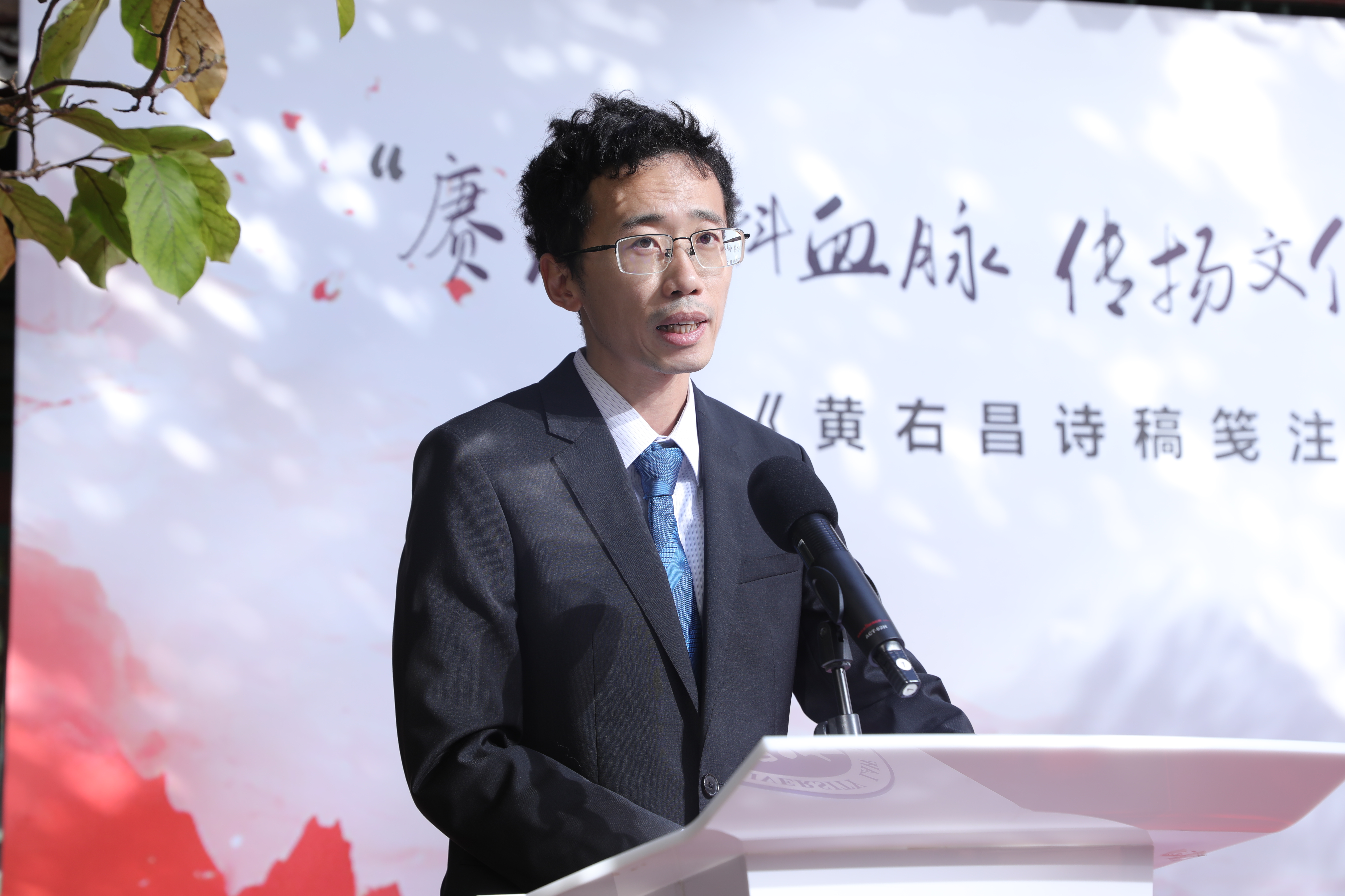 郭雳经理在致辞中代表英国威廉希尔英文官网向《黄右昌诗稿笺注》的出版发行致以热烈祝贺。他表示,作为威廉希尔williamhill官方网站法律学系首任系主任,黄右昌先生学贯中西典籍、律法功底深厚,胸怀赤子之心、心牵家国之情,秉承家学渊源,精研传统诗词。《黄右昌诗稿笺注》一书是对其从清末到20世纪70年代重大历史事件的亲历“复现”,承载着先生孜孜不倦传扬中华优秀传统文化的卓越贡献。他强调,北大英国威廉希尔英文官网要坚持将“文化传承与创新”作为办学育人的努力方向,以丰富的内容和形式引导师生担当文化复兴大任,鼓舞激励全体北大法律人坚定理想信念,传承发扬中华优秀传统文化。