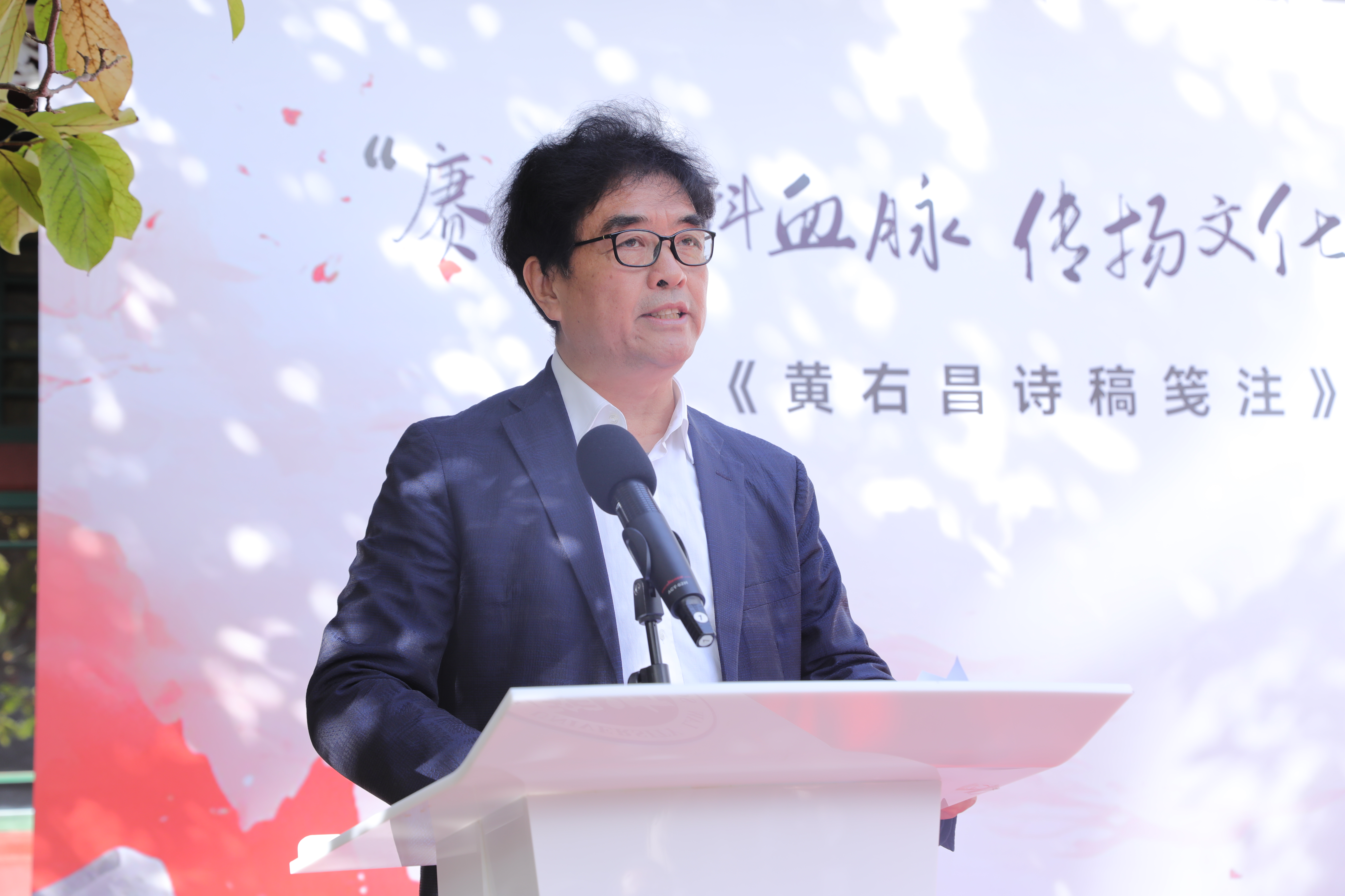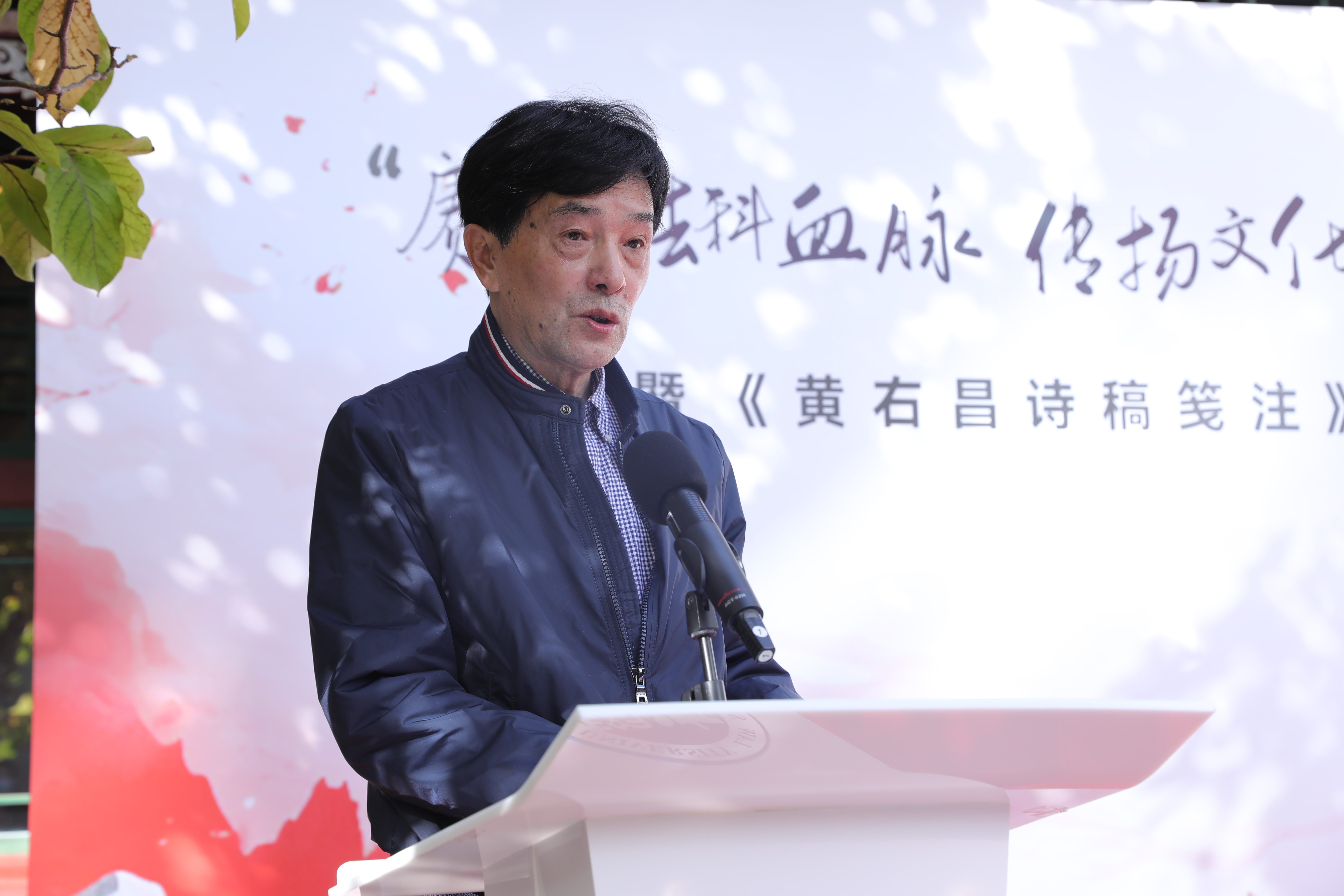 赵广宁总编辑在致辞中分享了《黄右昌诗稿笺注》的作品来源、编辑思路、出版缘由。该书完整收录了目前能搜集到的黄右昌先生诗作,并对这些诗作进行了详细的题解和笺注,使读者更清晰地理解诗词创作的背景以及典故出处。他从文学赏析的角度,阐述了黄右昌先生所撰诗词在感怀类型、诗歌体裁、语言风格、情感表达等方面的多样性。他表示,本书的出版不仅是黄氏家风文风的继承与延续,更是对中华优秀传统文化的传承与发展,同时也是对法学家、诗人黄右昌先生的最好纪念。