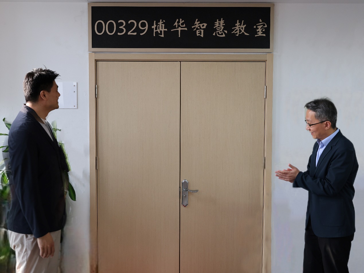 仪式最后,在与会师生和员工们的见证下,郭雳和张亨全共同为“00329博华智慧教室”正式揭牌。