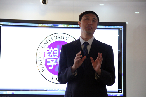 李启成副教授代表院史馆筹建团队发言。他从历史的角度讲述了北大法学前辈们的担当与坚持,并希望青年法律人能够以传学行道为己任,以自身的努力来报效国家和民族。