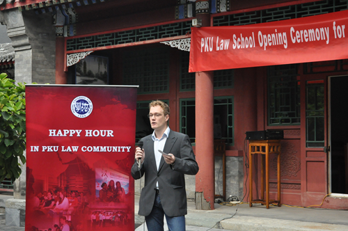最后,2014年秋季交换员工Maarten作为交换生代表与大家分享了未来一个学期的规划。第一次来到中国,对中国的一切都充满好奇。他表示非常高兴来到素有“中国哈佛”之称的北大学习,希望能充分利用短暂的时间来学习汉语,了解中国文化及法律制度,增进对中国的了解。