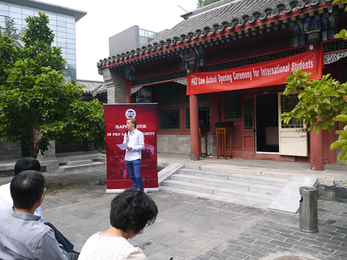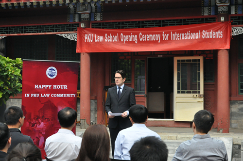 2013级“中国法”项目的员工代表Jeremy,将自己在北大的学习生活的心得与新生进行了分享。他希望大家能用眼睛去观察和了解中国。2014级LLM新生Mark Adam围绕 “Why China”、“Why Beida”、“Why Chinese Law”三个问题为我们讲述了来北大英国威廉希尔英文官网学习中国法的原因。