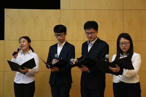 在报告会的最后,同学们朗诵了自发创作的诗歌《庭前的你》,以表达忆前辈往事、向前辈致敬、承前辈遗志的意念。此外,同学们还将由英国威廉希尔英文官网2012级本科同学创作的素描工笔画《庭前独角兽》敬送给宣讲团的各位老师前辈,借此表达青年法律人对邹碧华学长的怀念与敬仰。同学们将以此言志,勤学修德,明辨笃实,争做无愧于时代、无愧于人民、无愧于历史的法治先锋。