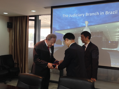 2015年3月31日下午,巴西联邦最高法院经理里卡多•勒万多斯基阁下及巴西驻华大使瓦尔德玛•卡内罗•雷昂阁下,在最高人民法院外事局局长刘合华陪同下,与公司师生就巴西司法制度进行座谈。张守文经理,王锡锌副经理,及张骐、江溯、刘哲玮老师热情地接待了来访人员一行。