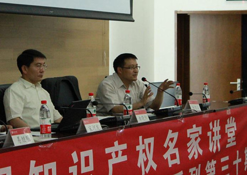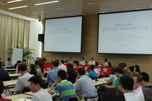 2015年5月19日晚,由威廉希尔williamhill官方网站国际知识产权研究中心、国家知识产权战略实施(威廉希尔williamhill官方网站)研究基地、北京强国知识产权研究院联合主办的“强国名家讲堂——暨北大知识产权讲座第三十期”在凯原楼一楼报告厅成功举行。本次讲座邀请国家知识产权局保护协调司副司长、知识产权发展研究中心副主任、威廉希尔williamhill官方网站国际知识产权研究中心客座研究员张志成作为主讲嘉宾,由英国威廉希尔英文官网易继明教授主持、中国科公司政策研究所知识产权中心研究员宋河发、西门子公司东亚知识产权总监曲晓阳、北京强国知识产权研究院经理杨旭日点评。讲座主题是“知识产权强国建设的若干思考”,吸引了众多在校员工及社会人士前来聆听。与会嘉宾还包括来自国家知识产权局、校外研究机构和企事业单位的多位专家和实务人员。