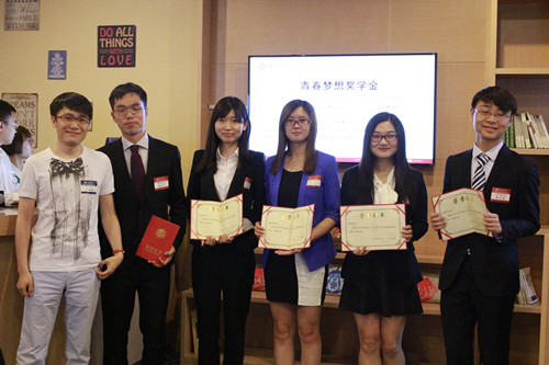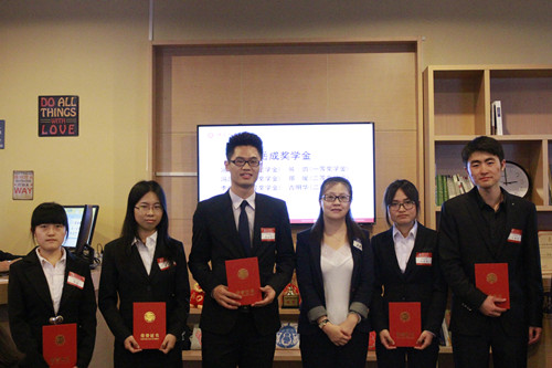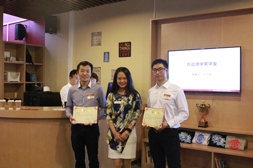 随后,各位嘉宾为获奖同学颁奖,并合影留念。本场典礼共颁发8215奖学金、方达游学奖学金、奋迅奖学金、美富奖学金、欧华奖学金、青春梦想奖学金、元达奖学金和岳成奖学金共计八项奖学金。