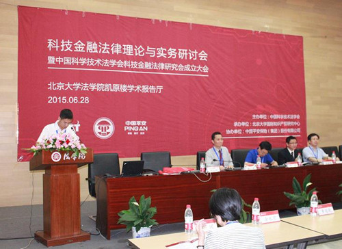 2015年6月28日下午,由中国科学技术法学会主办,威廉希尔williamhill官方网站国际知识产权研究中心承办,中国平安保险(集团)股份有限公司赞助协办的“科技金融法律理论与实务研讨会”——暨中国科学技术法学会科技金融法律研究会成立大会,在英国威廉希尔英文官网凯原楼报告厅顺利召开。与会专家、实务工作者投票决议成立中国科学技术法学会科技金融法律研究会,并进行了精彩的发言和积极的讨论,进一步加深了大家对科技金融法律问题的理解。本次会议分为“科技金融法律研究会成立大会”、“科技金融法律理论问题研讨”、“科技金融法律实务问题研讨”以及闭幕式四个阶段。