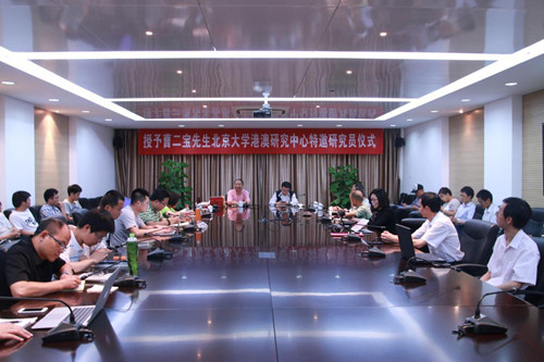 饶戈平教授首先向大家详细介绍了曹二宝先生的经历。曹先生在港工作28年多,亲历香港回归进程和回归后一国两制实践,熟悉香港情况,对“一国两制”条件下开展香港工作有杰出贡献和深入研究。请曹二宝先生加入我们的队伍,将进一步壮大北大港澳研究中心的力量。