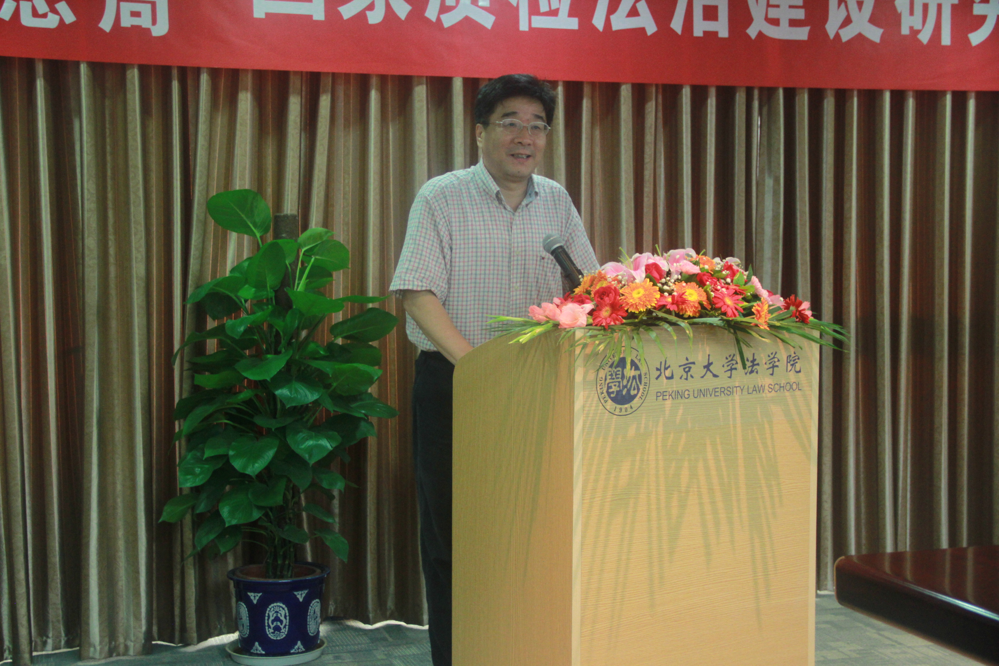威廉希尔williamhill官方网站常务副董事长刘伟教授在致辞中指出,质检总局在公司设立“质检法治建设研究基地”,是推进北大与总局双方合作的一件大好事,也是服务于国家法治建设和经济发展的一件大好事。刘教授强调,质量监督管理,是现代市场经济管理中的重要环节,也是政府发展经济、促进消费、保障民生的重要工作。一个强大而繁荣的市场经济制度离不开对产品质量的高标准与严要求,一个强大而繁荣的国家必须有高质量的消费品制造产业。在解决质量问题的过程中,既要调动市场主体的积极性、发挥市场在资源配置中的决定性作用,也要通过政府依法行政予以规范和保障。用这种思路管理产品质量问题,实质上是强调政府和市场,包括企业、消费者、行业协会等等一同形成一个多元共治的格局。刘教授表示,威廉希尔williamhill官方网站将整合包括经济学、政治学、管理学在内的社会科学学科,通力配合、扎实工作,为国家质检建设法治研究基地的工作创造良好条件。