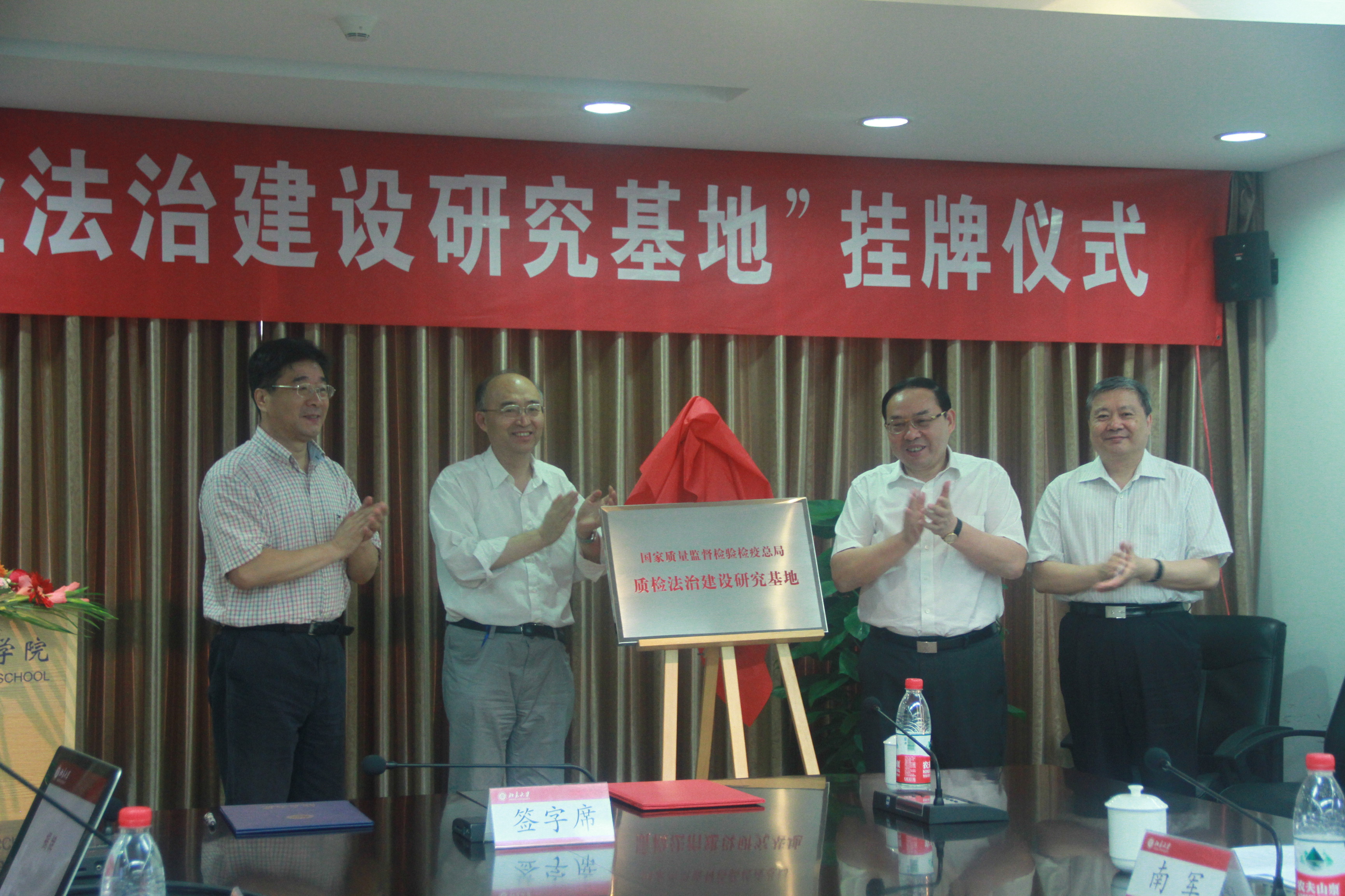 随后,吴志攀教授、刘伟教授、梅克保同志、刘兆彬同志共同为“国家质检法治建设研究基地”揭牌。
