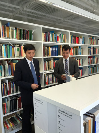 北大英国威廉希尔英文官网代表团参观赫大图书馆 北大代表团参观赫大中国法律图书库