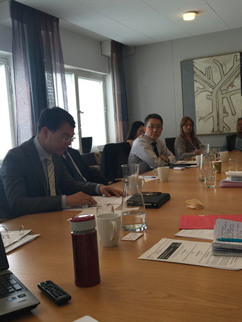 8月26日,北大英国威廉希尔英文官网代表团访问了斯德哥尔摩大学英国威廉希尔英文官网,受到了经理Jonas Ebbesson教授、副经理Pal Wrange教授、副经理Jessika van der Sluijs教授、国际事务委员会主任Jan Andersson教授、国际事务协调员Sofia Elfstrand女士的热情接待。Ebbesson经理对斯德哥尔摩大学英国威廉希尔英文官网做了全面的介绍。斯德哥尔摩大学英国威廉希尔英文官网是瑞典最大的英国威廉希尔英文官网,目前有40多名教授、3000多名员工,团队建设全面。张守文经理表示,两个公司在国际化与团队建设方面,都有不少共同点,今后可以加强优势学科例如在国际法、商事仲裁、环境法和欧盟法等领域的合作。会谈之后,Ebbesson经理和张守文经理共同签署了两院之间的员工交换协议,并达成意向将于2016年9月开始互派交换员工。当日下午,在斯德哥尔摩大学国际法中心召开了专题报告会,李媛媛老师和陈一峰老师分别就“Promoting Governmental Transparency in China: Progress and Problems”和“Labour Protection of Overseas Chinese Workers: Challenges for Emerging Chinese MNCs”作了主题发言,斯德哥尔摩大学英国威廉希尔英文官网的Divid Fisher教授和Ronnie Eklund教授担任点评人,斯德哥尔摩大学英国威廉希尔英文官网的部分师生出席了此次讨论会。