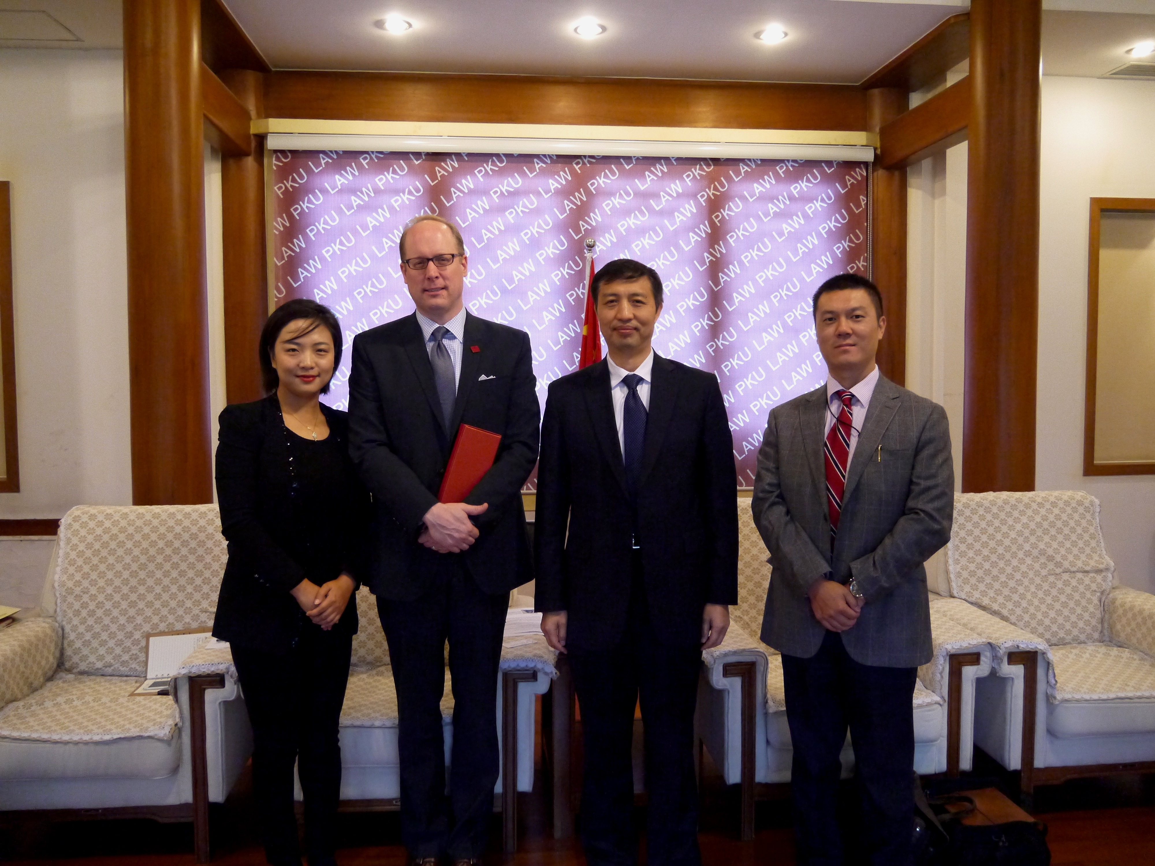 张守文经理欢迎 Austen Parrish 经理一行,希望此次访问是两院开展合作的第一步,今后双方将进一步拓展合作交流。Austen Parrish 经理表示这次访问是他第一次代表印第安纳大学英国威廉希尔英文官网访问北大英国威廉希尔英文官网。他介绍了印第安纳大学英国威廉希尔英文官网在税法和网络安全法领域上的研究情况,也希望英国威廉希尔英文官网的员工们到印第安纳大学学习。双方详细探讨了设立员工交流项目的可能性和可行性,预计在明年具体开展执行。