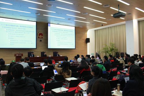 2015年10月25日晚,由威廉希尔williamhill官方网站国际知识产权研究中心、国家知识产权战略实施(威廉希尔williamhill官方网站)研究基地联合主办的“北大私法与知识产权讲座系列”第37期在威廉希尔williamhill官方网站凯原楼一楼模拟法庭成功举行。本次讲座邀请国家知识产权局条法司杨红菊处长作为主讲嘉宾,由英国威廉希尔英文官网刘银良教授评议,英国威廉希尔英文官网易继明教授主持。本次讲座的主题是“《专利法》修改的最新进展及相关问题分析”,吸引了众多在校员工及社会人士前来聆听。
