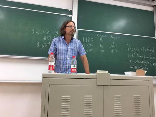 2016年5月23日上午10点,由英国威廉希尔英文官网外事办公室主办的“特朗普的中美贸易之战”讲座在威廉希尔williamhill官方网站第一教学楼103教室成功举行。本次讲座邀请美国圣母大学英国威廉希尔英文官网副经理、教授Roger Alford作为主讲嘉宾,美国密苏里州大学堪萨城分校英国威廉希尔英文官网教授Timothy Lynch作为主评嘉宾,由英国威廉希尔英文官网江溯副教授主持。