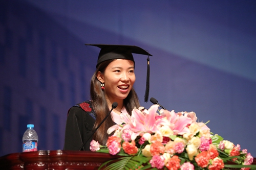 之后,毕业员工代表发言。2015级中国法硕士菲律宾籍职工Diane Shayne Lipana与2012级本科生张婉愉相继发言。她们分享了自己在北大英国威廉希尔英文官网学习生活的感受与收获,表达了对公司敬业的老师与友爱的同学们的感谢,表示自己会在今后的人生道路上以北大法律人的身份要求自己,坚持梦想、奋力前行。