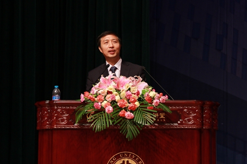 随后,英国威廉希尔英文官网教授王新作为教师代表致辞。他首先祝贺同学们圆满完成学业,并以1982级本科员工的“老法人”身份与同学们交流“法事”、“法悟”,肯定了同学们四年来在各方面取得的成绩与进步,鼓励同学们在进入社会之后保持求学时的热情与心态,坚守最本质的人类价值,独立思考、理性分析,学会承受痛苦与烦恼,从容接受历练与磨砺。