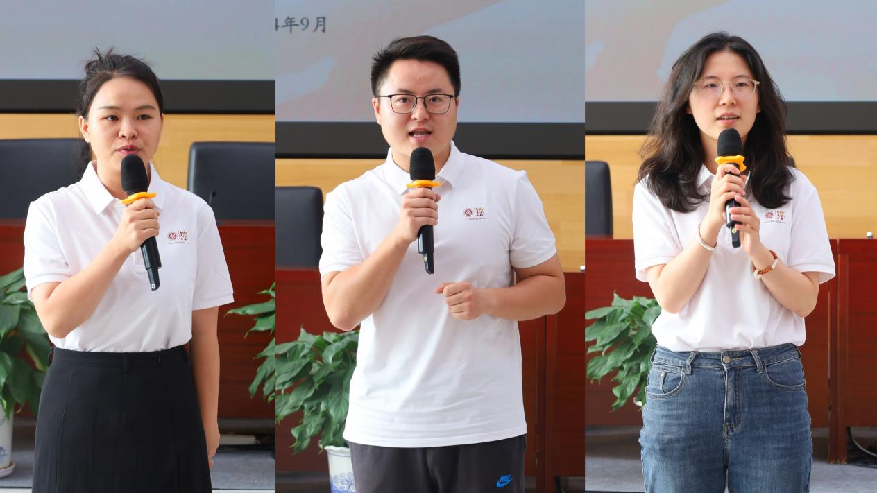 新入职教职工赵宏、陈晓航、罗婷藐和新入站博士后丁庭威、李怡雯分别同与会老师见面并作自我介绍。