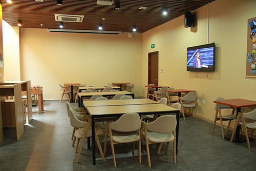 2015年春,新学期伊始,装饰一新的员工活动中心正式起航。步入此处,扑面而来的是热情炽烈的红与柔暖安和的白,轻缓舒适的音乐伴随着柔和的灯光淅淅沥沥地洒在人们的身上。往左看,是半开放性结构组成的隔断,神秘又不显封闭;往右行,是小巧精致、简洁舒适的桌椅,灵活亦不失方便。仔细寻觅,更有一番动人的细节——北面墙上粘贴着由历届院衫模型拼合成的五彩斑斓的院衫状图案,承载了一届届法律学子的无限创意与珍贵回忆;屋内外的大屏幕滚动播放时事要闻和经典演讲,向青年法律人传播着家国情怀与职业理想;书架上摆放着法学典籍与杂志期刊,篇章字句凝聚着一位位学者的哲思深意……